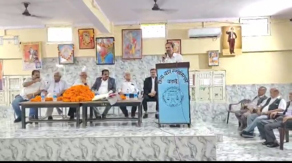 बदायूं आज दिनांक 11 सितंबर 2025 दिन गुरुवार को जिला बार एसोसिएशन बदायूं में माननीय प्रशांत सिंह अटल जी सदस्य एवं पूर्व अध्यक्ष बार कौंसिल ऑफ़ उत्तर प्रदेश का जिला बार एसोसिएशन बदायूं ने फूल माला पहनाकर जोरदार एवं भव्य स्वागत किया गया।