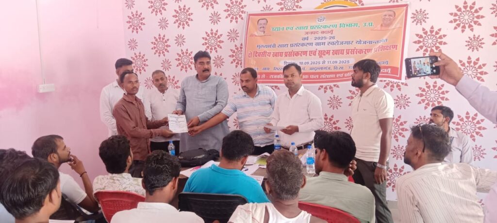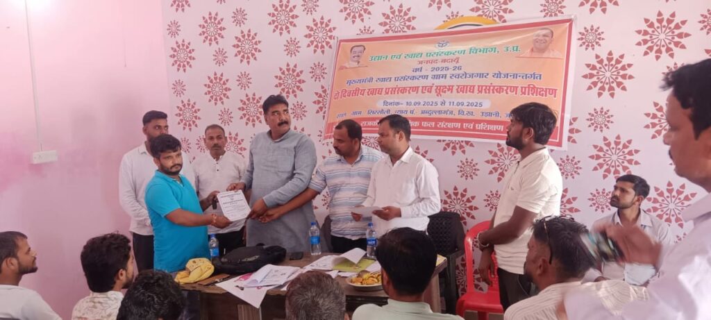 बदायूँ : 11 सितम्बर। मा0 मुख्यमंत्री खाद्य प्रसंस्करण ग्राम स्वरोजगार योजना के अन्तर्गत दो दिवसीय खाद्य प्रसंस्करण प्रशिक्षण का आयोजन 10 एवं 11 सितम्बर को न्याय पंचायत-अब्दुल्लागंज, विकास खण्ड-उझानी बदायूँ में किया गया।