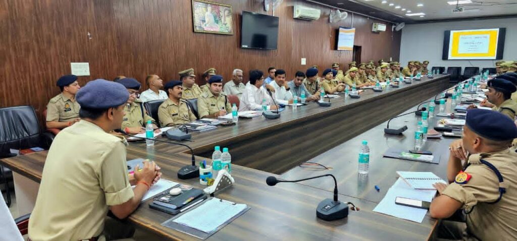 जनपद मथुरा के वरिष्ठ पुलिस अधीक्षक मथुरा के द्वारा पुलिस लाइन्स स्थित सभागार में अपराध समीक्षा गोष्ठी का आयोजन किया गया एवं जनपद मथुरा को समयबद्ध निष्पक्ष एवं गुणवत्ता के आधार पर लंबित विवेचनाओं/शिकायतों/एवं प्रार्थना पत्रों का निस्तारण, सुरक्षा व्यवस्था, अपराध एवं अपराधियों पर प्रभावी नियन्त्रण तथा शांति-व्यवस्था बनाये रखने हेतु आवश्यक विस्तृत दिशा-निर्देश दिए गये ।