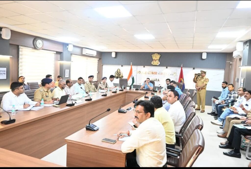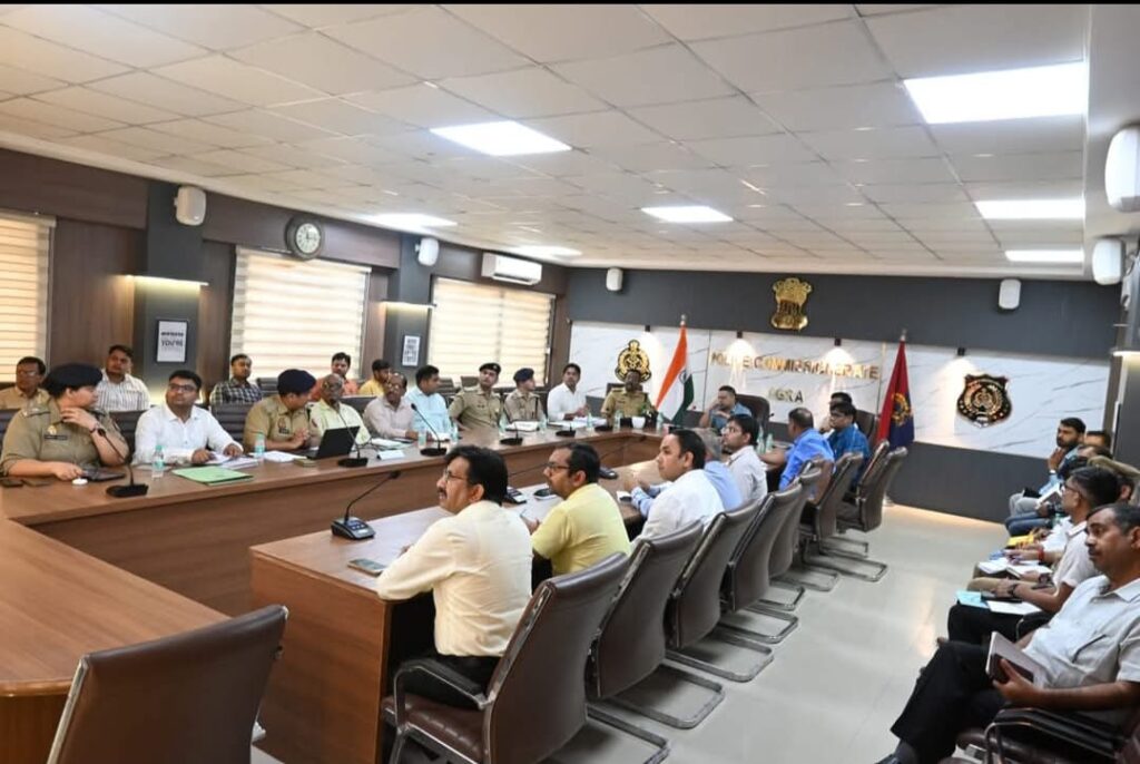 यमुना के बढ़ते जलस्तर एवं मेट्रो निर्माण कार्य के चलते यातायात व्यवस्था को लेकर समन्वय गोष्ठी का आयोजन किया गया आगरा, पुलिस आयुक्त दीपक कुमार (IPS) द्वारा कमिश्नरेट आगरा में यमुना के बढ़ते जलस्तर एवं मेट्रो निर्माण कार्य के चलते शहर में बढ़ते यातायात दबाव के दृष्टिगत शहर की यातायातव्यवस्था को सुगम बनाने हेतु कई विभागों के अधिकारियों के साथ समन्वय गोष्ठी का आयोजन किया गयागोष्ठी में जिलाधिकारी आगरा, उपाध्यक्ष आगरा विकास प्राधिकरण, नगर आयुक्त, केन्टोनमेंट बोर्ड, RM/ARM UPSRTC, ARM सिटी बस, ARTO, कार्यकारी अभियंता लोक निर्माण विभाग, चीफ डेटा ऑफिसर स्मार्ट सिटी, NHAI, MD मेट्रो परियोजना, टोरेंट पावर तथा अन्य सम्बन्धित विभागों के अधिकारीयों द्वारा प्रतिभाग किया गया।गोष्ठी में यातायात व्यवस्था से जुड़ी वर्तमान स्थिति की समीक्षा कर, कल ट्रैफिक अधिकारियों द्वारा शहर में किए गए सर्वे/चिन्हित किए गए पहलुओं को सर्वसम्बन्धित के साथ साझा किया गया। जिसमें सम्बन्धित विभागों के अधिकारियों द्वारा अतिशीघ्र कार्यान्वयन हेतु आश्वासन दिया गया।