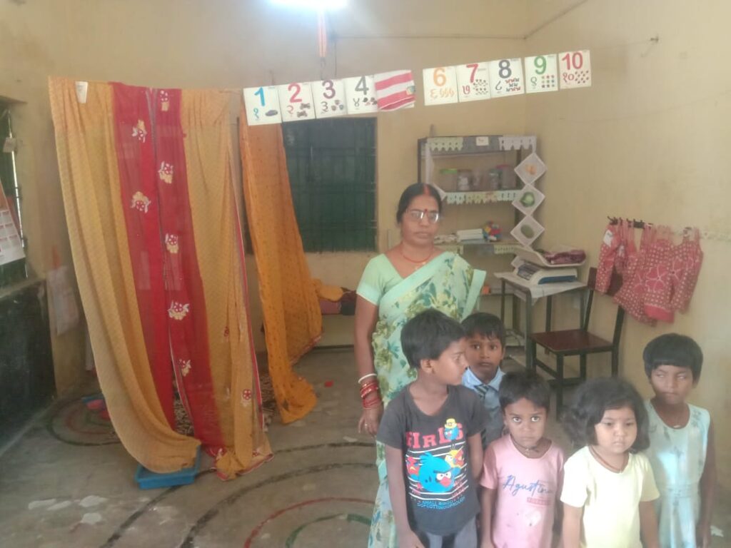 5 स्टोर रूम नहीं होने की वजह से बच्चों के लिए रखी गई बोरियां कुर्सियां टाँयलेट में पाई गईं। सहायिका का कहना है कि जगह की कमी के कारण यह मजबूरी है।