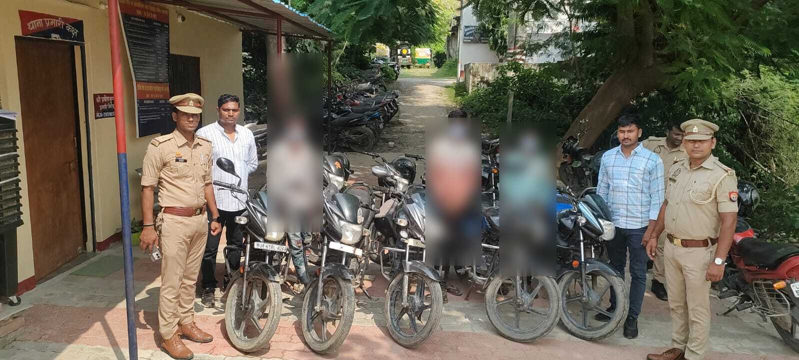 वाराणसी मिर्जामुराद थाना पुलिस द्वारा देखभाल क्षेत्र/चेकिंग के दौरान मुखबिर की सूचना पर मेहदीगंज अण्डरपास के पास से मोटरसाइकिल चोरी के सम्बन्ध में पंजीकृत मु0अ0सं0 240/2025 धारा 303(2) बीएनएस से सम्बन्धित प्रकाश में आये अभियुक्तगण प्रद्युम्न सोनकर पुत्र शिवकुमार सोनकर निवासी ग्राम नूनखरा, कतवारूपुर थाना जंसा, जनपद वाराणसी तथा अर्पित यादव पुत्र चंद्रशेखर यादव निवासी ग्राम भोरानाथ थाना चौबेपुर, जनपद वाराणसी एवं एक बाल अपचारी को चोरी की मोटरसाइकिल UP65 AG 0843 स्प्लेंडर प्लस के साथ गिरफ्तार किया गया। उक्त गिरफ्तारी बरामदगी के सम्बन्ध में थाना मिर्जामुराद पुलिस द्वारा धारा 317(2)/317(4)/317(5) बीएनएस बढ़ोत्तरी की गयी है ।
