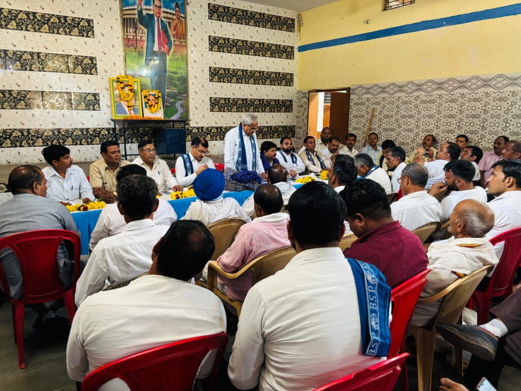 मुख्य मंडल प्रभारी आगरा मंडल मा प्रताप सिंह बघेल जी रहे मुख्य अतिथि महोदय ने जिला स्तरीय महत्वपूर्ण बैठक में कार्यकर्ताओं को संबोधित करते हुए कहा कि विशेष रूप से बी.एस.पी. के जन्मदाता एवं संस्थापक मान्यवर श्री कांशीराम जी के आदर–सम्मान में दिनांक 9 अक्टूबर को उनकी पुण्यतिथि पर ‘मान्यवर श्री कांशीराम जी स्मारक स्थल’ लखनऊ में होने वाले राज्यव्यापी कार्यक्रम को ऐतिहासिक रूप से सफल बनाने के लिए दिशा – निर्देश दिए। और कहा कि बहुजन समाज पार्टी का प्रत्येक कार्यकर्ता बूथ से लेकर जिले तक के सभी कार्यकर्ता इस कार्यक्रम में जुट जाए और पुरे दम खम के साथ ज्यादा से ज्यादा लखनऊ पहुंचकर अपनी भागीदारी सुरक्षित करें बैठक में मुख्य रूप से उपस्थित रहे आगरा मंडल प्रभारी मथुरा श्री दारा सिंह आजाद जी, श्री अनिल बघेल जी, श्री जितेंद्र कर्दम जी, जिला प्रभारी श्री हेमेंद्र कुमार जी, श्री रामबाबू गौतम जी, जिलाध्यक्ष बीएसपी मथुरा के यशस्वी युवा नेतृत्व की पहचान श्री नरेश सिंह जी,जिला उपाध्यक्ष श्री नवल शर्मा जी, जिला महासचिव पवन बघेल, जिला कार्यकारिणी सदस्य श्री योगेंद्र सिंह जी, श्री प्रेम सिंह जी, जिला संयोजक बामसेफ श्री खेमचंद जी,श्री प्रेमचंद कर्दम जी, श्री सुरेश बाबू जी,श्री गोवर्धन सिंह जी, मोहम्मद उमर फारूकी जी, श्री मोहर सिंह जी, श्री बबलू कुमेरिया जी, श्री ओम प्रकाश मौर्य जी, श्री सी पी बौद्ध जी, चंद्रपाल भंते जी ,राजाराम राजू जी, सभी सम्मानित पांचो विधानसभा के अध्यक्ष एवं समस्त विधानसभा प्रभारी गढ़ सहित सभी जिम्मेदार पदाधिकारी एवं पूर्व पदाधिकारी युवा कार्यकर्ता एवं समर्थक उपस्थित रहे