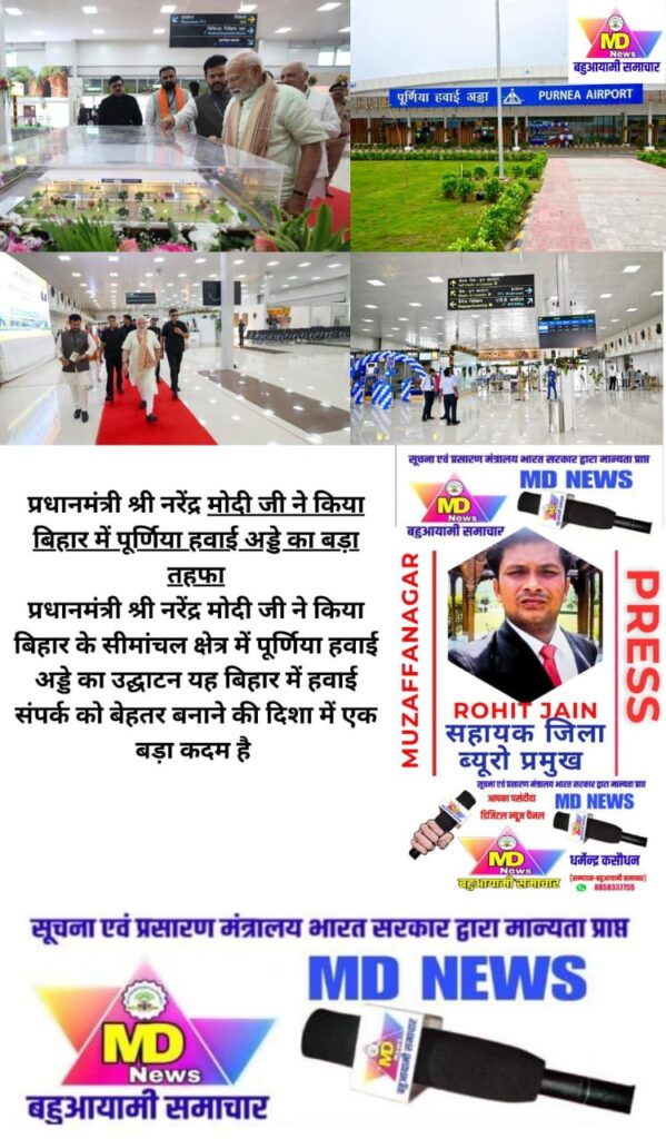 प्रधानमंत्री श्री नरेंद्र मोदी जी ने किया बिहार के सीमांचल क्षेत्र में पूर्णिया हवाई अड्डे का उद्घाटन यह बिहार में हवाई संपर्क को बेहतर बनाने की दिशा में एक बड़ा कदम है
