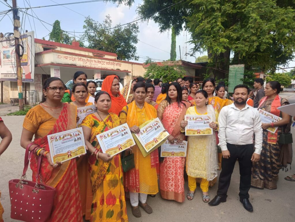 सीतापुर में अखंड केसरिया हिन्दू वाहिनी संगठन के संस्थापक ने सभी पदाधिकारियों को प्रमाण पत्र देकर सभी को सदर प्रदान किया गया जिसमें केसरिया हिन्दू वाहिनी युवा प्रकोष्ठ संगठन से जिला अध्यक्ष विजय गुप्ता जिला सचिव हरजीत सिंह एवं केसरिया हिन्दू वाहिनी महिला मोर्चा संगठन से प्रदेश संगठन मंत्री संगीता गुप्ता प्रदेश संयोजक तेजस गुप्ता जिला अध्यक्ष रेखा गुप्ता जिला प्रभारी शिल्पी गुप्ता तहसील प्रभारी नूतन गुप्ता तहसील अध्यक्ष भावना गुप्ता इन सभी पदाधिकारियों को अतुल मिश्रा द्वारा प्रमाण पत्र प्रदान करके मीटिंग में हिंदू धर्म और गौ रक्षा के कर्तव्य के बारे में बताया जिससे बाकी अन्य लोग का भी समर्थन हुआ