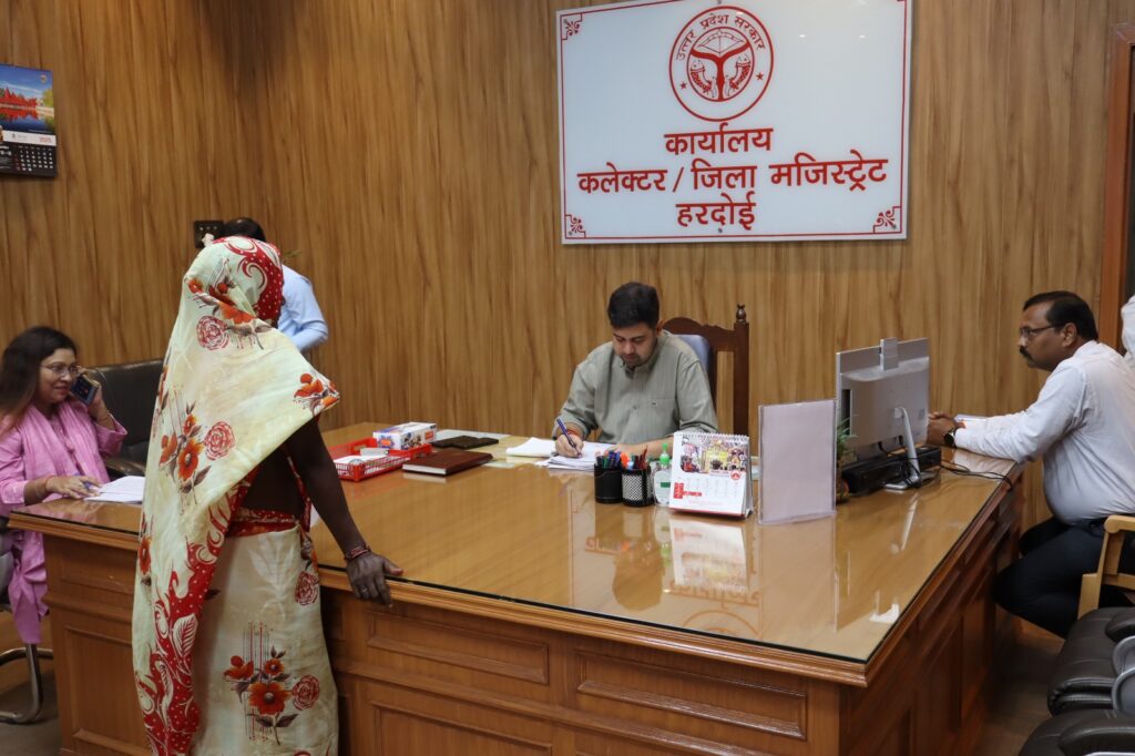 सूचना विभाग जनपद हरदोई प्रकाशनार्थ दिनांक 15 सितम्बर 2025जन सुनवाई कलेक्ट्रेट जन सुनवाई मे शिकायतों के निस्तारण के साथ मिल रहा योजनाओं का लाभआज कलेक्ट्रेट कक्ष में जन सुनवाई के दौरान जिलाधिकारी अनुनय झा ने आमजन की समस्याओं को सुना। जन सुनवाई में कुल 116 शिकायतें प्राप्त हुईं जिनके त्वरित निस्तारण के निर्देश जिलाधिकारी ने सम्बंधित अधिकारियों को दिए। पात्रों का वृद्धावस्था पेंशन, निराश्रित महिला पेंशन व दिव्यांग पेंशन हेतु मौके पर ही पंजीकरण कराया गया। आज जन सुनवाई मे 02 व्यक्तियों का राशन कार्ड बनाया गया, 01 दिव्यांग पेशन योजना से जोड़ा गया तथा 02 बच्चों को स्पान्शरशिप योजना से जोड़ा गया। जिलाधिकारी ने सभी उप जिलाधिकारियों को निर्देश दिए कि पैमाइश व अंश निर्धारण के प्रकरणों के निस्तारण में देरी न की जाये। भूमि विवाद के स्थायी समाधान के लिए थाकबंदी के प्रकरणों का त्वरित निस्तारण कराया जाये। चकरोड व सरकारी भूमि पर अवैध कब्जे की शिकायतों को गंभीरता से लिया जाये। जन सुनवाई के दौरान अतिरिक्त मजिस्टेªट पूनम भाष्कर व अन्य सम्बंधित अधिकारी उपस्थित रहे।पंकज राजपूत पत्रकार हरदोई