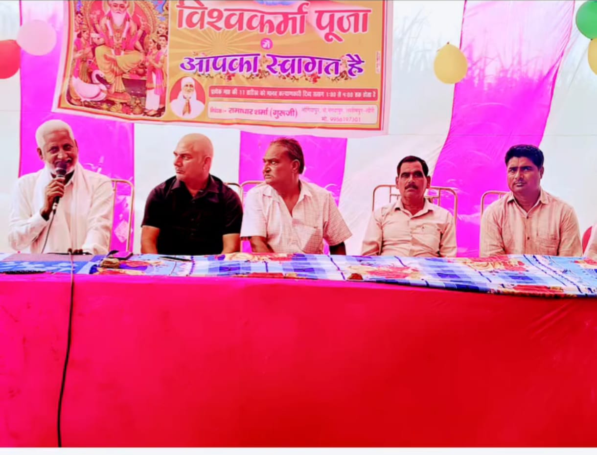 आज गोला विधानसभा 139 मैं अमीर नगर क्षेत्र के भोगियापुर में विधायक अमन गिरि जी के चाचा धर्मेंद्र गिरी मोंटी भैया जी ने विश्वकर्मा पूजा में शामिल होकर आशीर्वाद लिया और विश्वकर्मा समाज के लोगों को संबोधित किया बताया समाज में बढ़ई लुहार मूर्तिकार का देश के विकास में बड़ी भागीदारी है इस मौके पर मौजूद रहे आयोजक रामधार विश्वकर्मा रामशंकर शुक्ला उमेश शुक्ला जुबैर खान सुरजीत शर्मा सुशील शर्मा स्मोकरपर सभी लोग उपस्थित रहे……