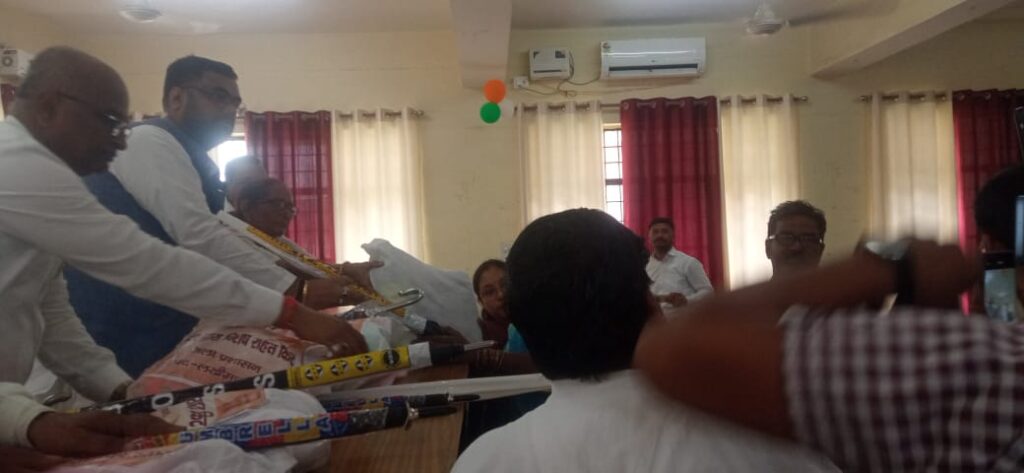 निघासन खीरी- तहसील सभागार में निघासन विधायक शशांक वर्मा ने एसडीएम राजीव निगम की उपस्थिति में बाढ़ पीड़ितों को राहत सामग्री प्रदान की। निघासन क्षेत्र की लालबोझी,खमरिया,मदनापुर, बैलहा, आदि ग्राम पंचायतों के लोगो को बाढ़ की राहत किट वितरित की गई। इस किट के माध्यम से लोगो को कई प्रकार की जरूरी चीजे, टॉर्च, छाता ओर अनेक प्रकार की चीजे लोगो को दी गयी। निघासन की कई ग्राम पंचायत बाढ़ से प्रभावित है। ग्रंट नंबर 12 का तो बहुत ही बुरा हाल है अनेकों घरों,ओर कई प्राचीन मंदिरो का अस्तित्व ही शारदा नदी ने समाप्त कर दिया। निघासन विधायक ने सभी बाढ़ पीड़ितों को राहत किट देते हुए सभी लोगों की हर संभव मदद करने का आश्वासन भी दिया।