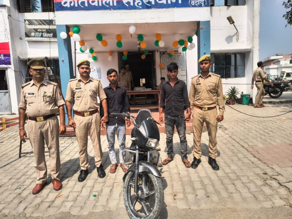 सहसवान पुलिस को मिली बड़ी सफलता। थाना प्रभारी राजेंद्र बहादुर सिंह ने 24 घण्टे के अंदर चोरी की गई मोटरसाइकिल सहित दो शातिरों को गिरफ्तार कर जेल भेजा।