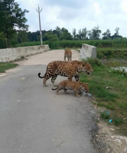 ग्राम मूड़ाधामू में आज सुबह नहर पुलिया पर दो शावकों के साथ देखी गई मादा तेंदुआ