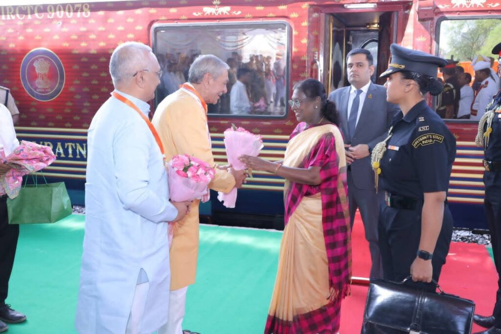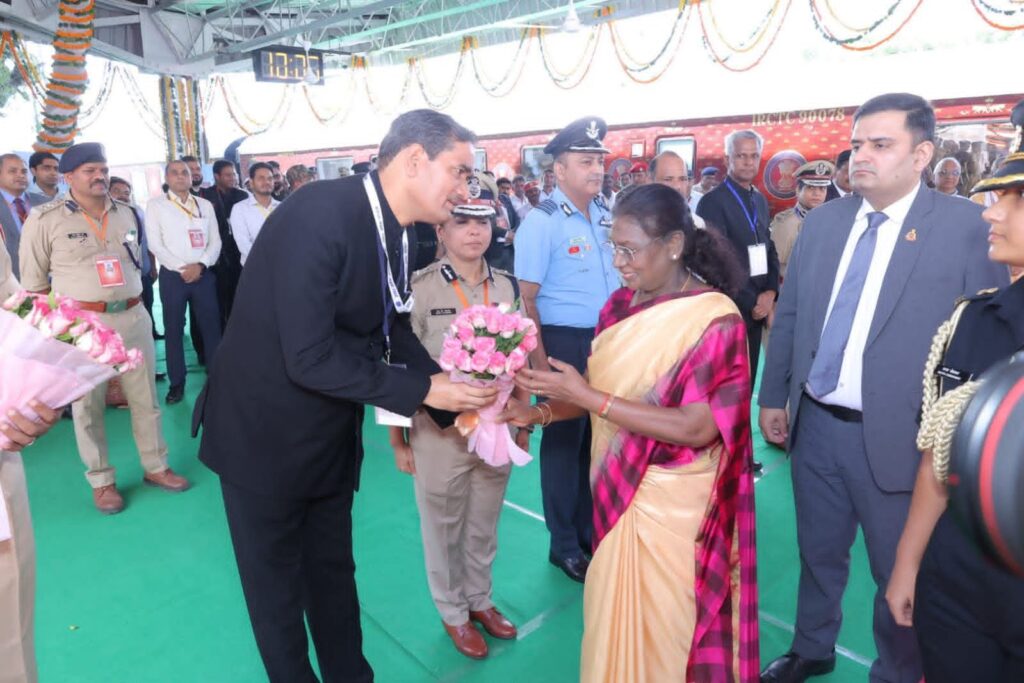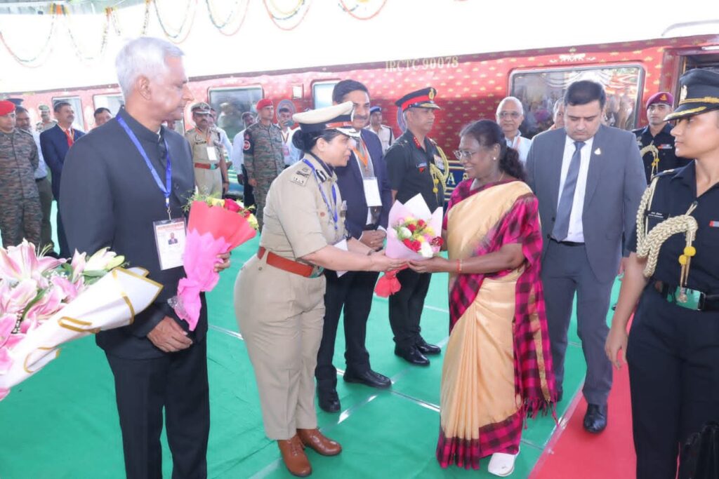 ब्रेकिंग न्यूज़ मथुरा एम डी न्यूज़ रिपोर्टर, जितेंद्र ठाकुर महामहिम राष्ट्रपति द्रौपदी मुर्मु 10 बजे वृन्दावन रोड रेलवे स्टेशन पहुँची। वृन्दावन रोड रेलवे स्टेशन पर महामहिम राष्ट्रपति द्रौपदी मुर्मु का स्वागत मंत्री गन्ना विकास एवं चीनी उद्योग लक्ष्मी नारायण चौधरी ,महापौर विनोद कुमार अग्रवाल, अपर पुलिस महानिदेशक अनुपम कुलश्रेष्ठ , मण्डलायुक्त शैलेन्द्र कुमार सिंह , जिलाधिकारी चन्द्र प्रकाश सिंह वरिष्ठ पुलिस अधीक्षक श्लोक कुमार आदि द्वारा किया गया।