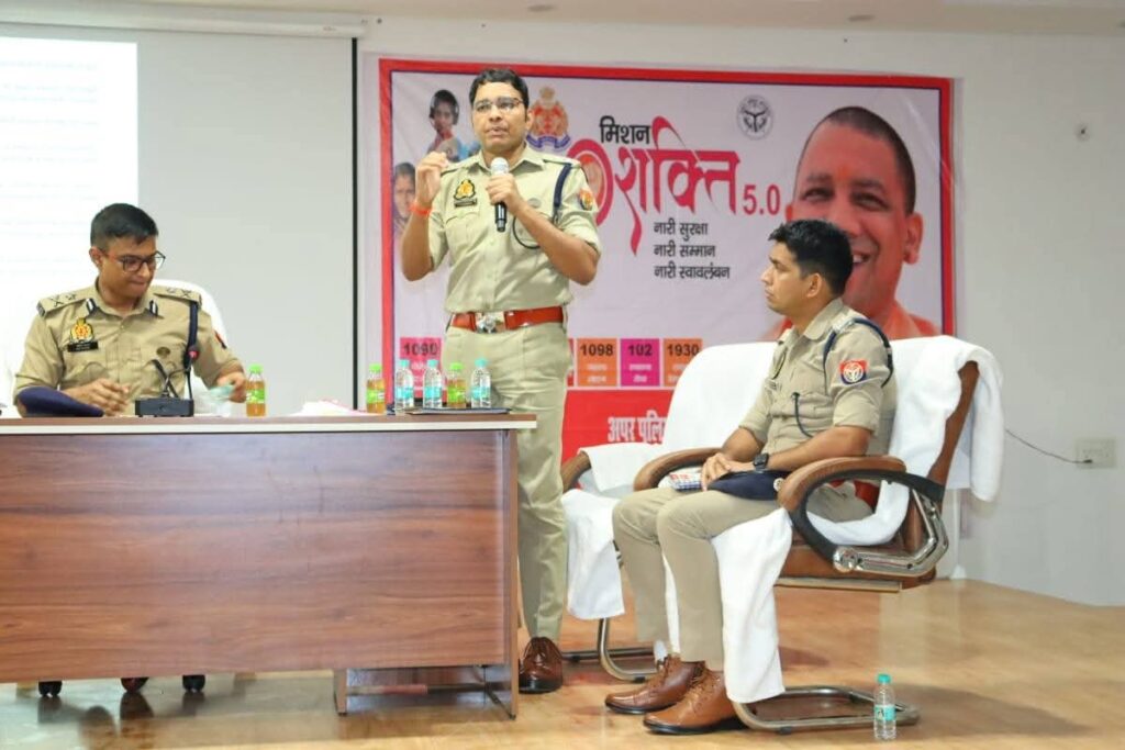 गोण्डा। उत्तर प्रदेश शासन द्वारा मिशन शक्ति फेज 5.0 के तहत महिला सुरक्षा, सशक्तिकरण एवं उनके विरुद्ध अपराधों के प्रभावी नियंत्रण के उद्देश्य से प्रदेश के समस्त थानों में “मिशन शक्ति केन्द्र” की स्थापना की गयी है। मिशन शक्ति केन्द्रों के संचालन हेतु पुलिस महानिरीक्षक देवीपाटन परिक्षेत्र गोण्डा श्री अमित पाठक द्वारा पुलिस अधीक्षक गोण्डा श्री विनीत जायसवाल की उपस्थिति में रिजर्व पुलिस लाइन, गोण्डा के बहुउद्देशीय हाल में जनपद के सभी थानों में गठित मिशन शक्ति केन्द्रों के प्रभारी एवं कर्मियों के साथ गोष्ठी आयोजित की गई।
