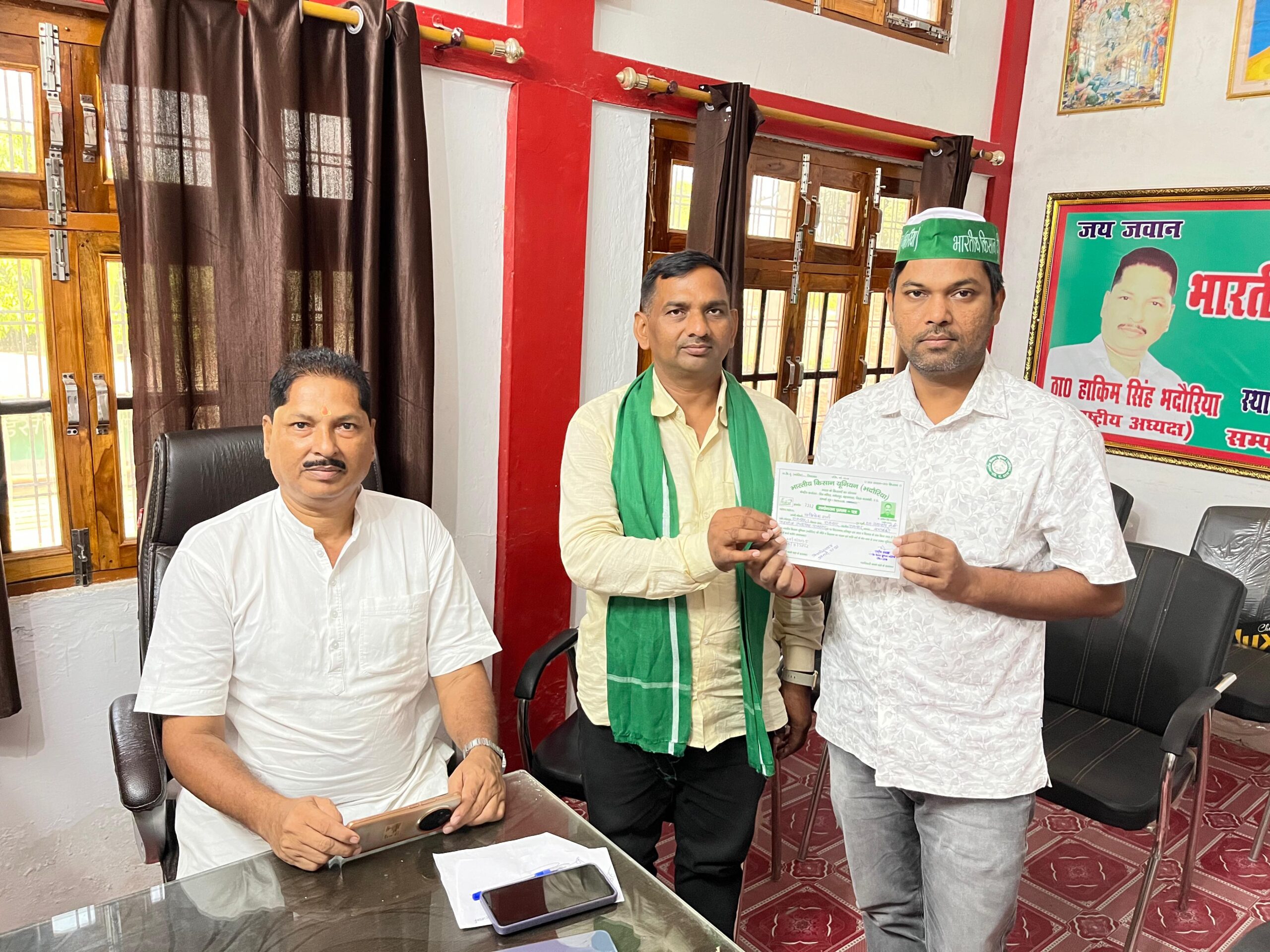 बाराबंकी:भारतीय किसान यूनियन (भदौरिया) केंद्रीय कार्यालय शिव मंदिर गणेशपुर बहराम घाट जनपद बाराबंकी पर अवधेश यादव प्रभारी उत्तर प्रदेश द्वारा अभिषेक शर्मा पुत्र स्वर्गीय जगन्नाथ शर्मा निवासी ग्राम रामनगर जिला बाराबंकी को तहसील उपाध्यक्ष रामनगर पद पर मनोनीत किया गया इस अवसर पर राष्ट्रीय अध्यक्ष ठाकुर हाकिम सिंह भदौरिया मौजूद रहे|