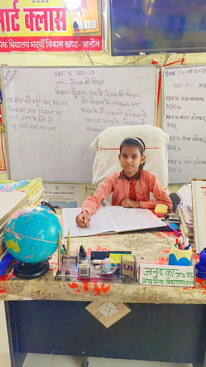 जालौन,, ब्लाक विकासखंड के ग्राम भदवा प्राथमिक विद्यालय मैं एक दिन के लिए मिशन शक्ति कक्षा 5 की अनुष्का वर्मा बनी प्रधानाध्यापक दिन बृहस्पतिवार 25.9.2025 को उन्होंने क्लास रूम में जाकर कुछ बच्चों की अटेंडेंस रजिस्टर मेंटेनेंस किया वहीं पर क्लास रूम में कुछ बच्चों को बैठालकर,ब्लैक बोर्ड पर बच्चों को कुछ सवाल भी दिए वहीं पर समस्त स्टाफ में अखिलेश कुमार रजक ने चौक का डिब्बा और दंपती पेन पेंसिल देकर बच्ची का स्वागत किया और सुनीता देवी अध्यापक ने उनके लिए उज्जवल भविष्य की कामना की।।