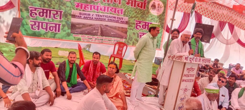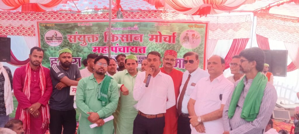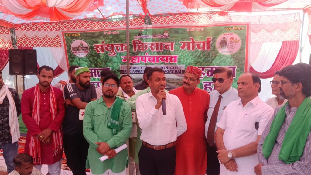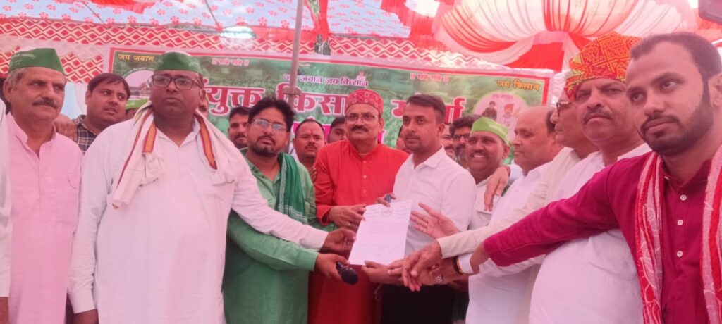 सुरीर।भारतीय किसान यूनियन संयुक्त किसान मोर्चा के पदाधिकारियों ने दो सूत्रीय मांगो को लेकर मुख्यमंत्री के नाम तहसीलदार को ज्ञापन दिया। महाराणा प्रताप पार्क में किसान मोर्चा की महापंचायत हुई। महापंचायत में मथुरा, हाथरस, बुलंदशहर व नोएडा आदि जनपदों के पदाधिकारियों ने शिरकत की। भारतीय किसान यूनियन लोक शक्ति के प्रदेश महामंत्री महावीर स्वामी, भाकियू भानु गुट के राष्ट्रीय वरिष्ठ उपाध्यक्ष ठाकुर किरन पाल सिंह, देवेंद्र निषाद, हरीश ठेनुआ , सहित रामबाबू कटेलिया , भाकियू अंबावता के जिला अध्यक्ष अनिल शर्मा, भाकियू अन्नदाता, के प्रदेश मीडिया प्रभारी शिवम सूर्यवंशी,आदि किसान यूनियनौ के पदाधिकारी मौजूद थे। ज्ञापन में सुरीर से टैटीगांव के मध्य यमुना एक्सप्रेसवे पर कट बनाने और ओहावा, सियारा के मध्य पक्के यमुना पुल के निर्माण की मांग रखी गई।