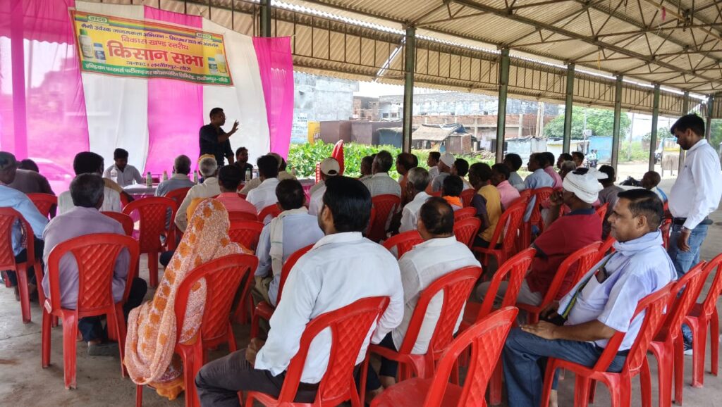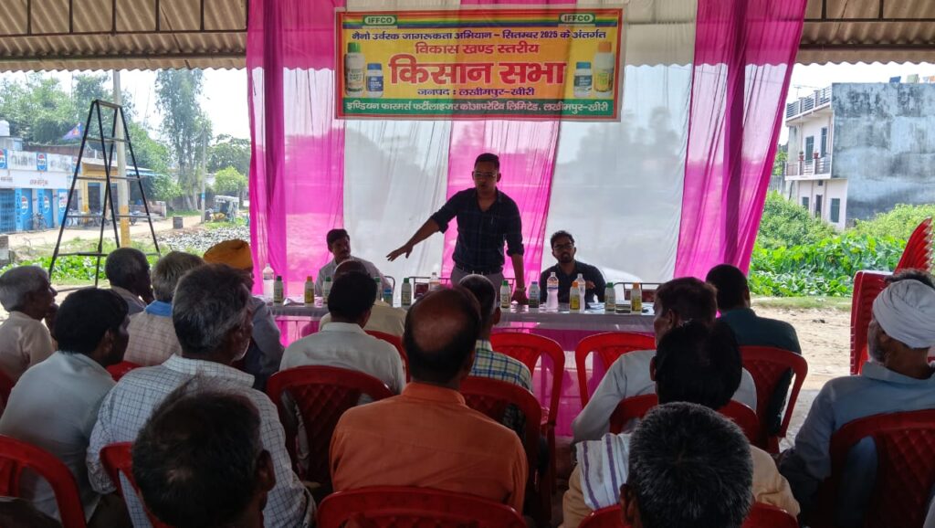 हरेन्द्र प्रताप सिंह बिजुआ खीरी। जनपद लखीमपुर खीरी के बिजुआ विकास खंड स्थित पड़रिया तुला सहकारी समिति में नैनो उर्वरक जागरूकता अभियान के तहत एक किसान सभा का आयोजन किया गया। इस कार्यक्रम में इफको के फील्ड ऑफिसर अरविंद कुमार यादव, क्षेत्र प्रतिनिधि विवेक चौधरी और एसएफए अमित कुमार सहित कई अधिकारी व स्थानीय किसान शामिल हुए।शुक्रवार को पड़रिया तुला बाजार मंडी छावनी में आयोजित इस सभा का उद्देश्य किसानों को खेती-बाड़ी से जुड़ी नवीनतम तकनीकी जानकारियाँ प्रदान करना था। इसमें नैनो उर्वरकों के उपयोग और कृषि योजनाओं के लाभ पर विशेष ध्यान दिया गया।इफको के फील्ड ऑफिसर अरविंद कुमार यादव ने किसानों को ‘फार्मर आईडी’ बनवाने और विभिन्न कृषि योजनाओं का लाभ उठाने के लिए प्रेरित किया। उन्होंने फसलों की बुवाई, रोपाई और बीज शोधन में नैनो डीएपी के प्रयोग की सलाह दी। नैनो यूरिया के छिड़काव और प्रयोग विधि के बारे में विस्तार से बताया। उन्होंने दानेदार यूरिया के बाद नैनो यूरिया के उपयोग के सही समय की जानकारी दी और ड्रोन तकनीक से नैनो उर्वरकों के प्रयोग के तरीके से अवगत कराया। इफको के क्षेत्र प्रतिनिधि विवेक चौधरी ने नैनो यूरिया प्लस, नैनो डीएपी, सागरिका ग्रेन्यूल्स, सागरिका तरल, नैनो जिंक, नैनो कॉपर, न्यूट्रेक्स एनपीके कंसोर्टिया और जल विलय उर्वरकों जैसे विभिन्न उत्पादों की भी जानकारी दी। गन्ना, गेहूं और धान जैसी प्रमुख फसलों में लगने वाले कीट रोगों और खरपतवारों के नियंत्रण के लिए प्रभावी नाशक विधियों और उनकी सही मात्रा के बारे में बताया। उन्होंने किसानों को दुर्घटना बीमा के महत्व और लाभों से भी अवगत कराया।इस अवसर पर इफको और सहकारी समिति के कर्मचारियों सहित बड़ी संख्या में किसान उपस्थित रहे।