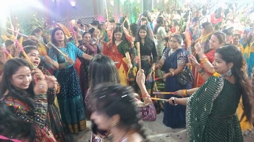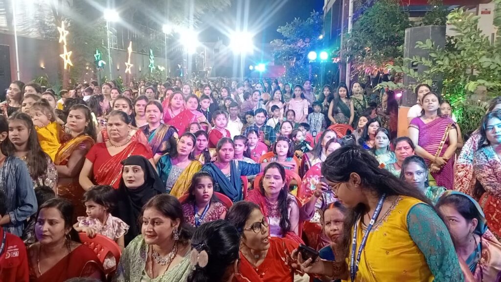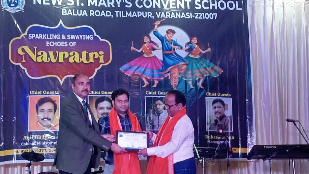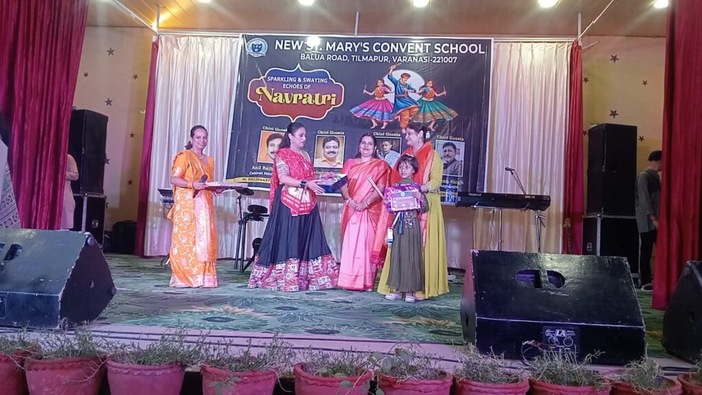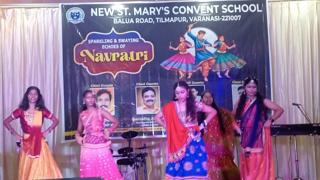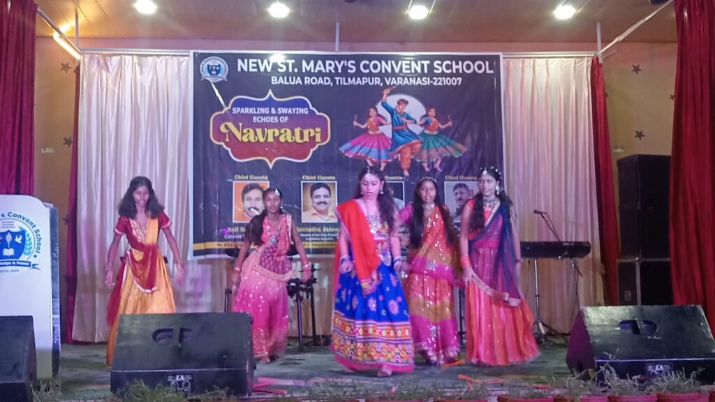 वाराणसी। दिनांक 28/09/2025 न्यू सेंट मैरिज कॉन्वेंट स्कूल, तिलमापुर, वाराणसी के विद्यालय परिसर मे । नवरात्र पर्व के उपलक्ष मे विशेष डांडिया नाइट का भव्य आयोजन हुआ। जिस मे सभी छात्र छात्राऐं अपने अभिभावक के साथ गर्भा नृत्य की तैय्यारी के साथ आए। और साथ ही न्यु सेंट मैरिज कॉन्वेंट स्कूल के स्टाफ भी कार्यक्रम मे बच्चों के साथ मे उत्साहवर्धन कर रहे थे। इस अवसर पर छात्र-छात्राएँ, अभिभावक तथा स्टाफ सदस्य पारंपरिक परिधानों में गरबा एवं डांडिया की प्रस्तुतियाँ किया सभी लोगों ने।