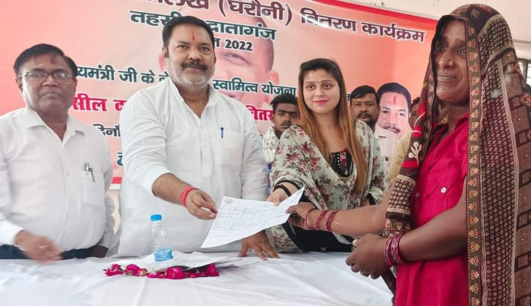 बदायूँ : 25 जून। स्वामित्व योजना के अंतर्गत ग्रामीण आबादी अभिलेख घरौनी वितरण के कार्यक्रम में मुख्यमंत्री योगी आदित्यनाथ के द्वारा 11 लाख ग्रामीणों को ऑनलाइन माध्यम से घरौनी का वितरण किया गया। कार्यक्रम का सजीव प्रसारण में दिखाया गया।