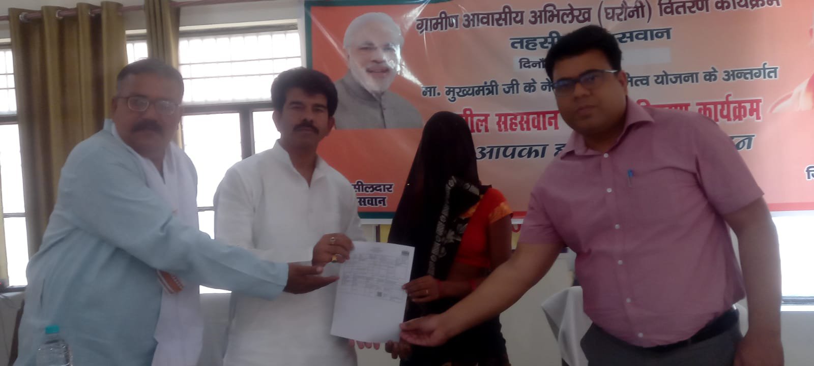 इसी क्रम में सदर, दातागंज, बिसौली, सहसवान एवं बिल्सी सहित समस्त पांचों तहसीलों में जनप्रतिनियों की मौजूदगी में आयोजित हुआ, जबकि जनपद में मुख्य कार्यक्रम तहसील सदर में आयोजित हुआ, जिसमें भारत सरकार के सहकारिता एवं उत्तर पूर्वी क्षेत्र विकास राज्यमंत्री बीएल वर्मा, बदायूँ सांसद संघमित्रा मौर्य, सदर विधायक महेश चन्द्र गुप्ता, जिलाधिकारी दीपा रंजन ने योजना के लाभार्थियों को घरोनियाँ वितरित कीं। सदर में 14 गांवों के 70 ग्रामीणों को घरोनी वितरित की गई। इस अवसर पर अपर जिलाधिकारी प्रशासन ऋतु पुनिया, उप जिलाधिकारी सदर सुखलाल वर्मा, तहसीलदार करनवीर सिंह अन्य सम्बंधित अधिकारी मौजूद रहे।