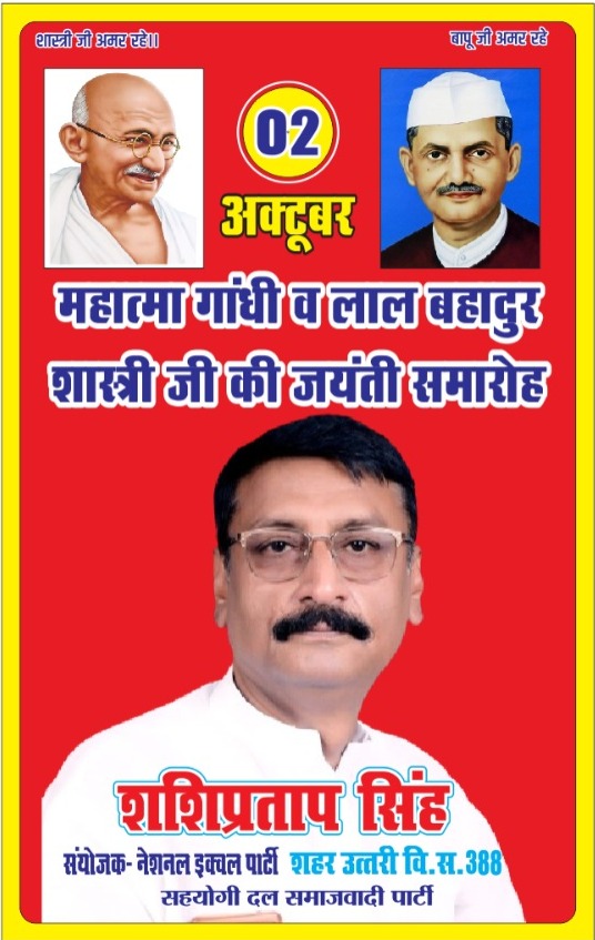 हर वर्ष की तरह इस वर्ष भी 02 अक्टूबर को नेशनल इक्वल पार्टी के तरफ से महात्मा गांधी व शास्त्री जी के जन्मदिन केंद्रीय कार्यालय विवेकपुरम भरालाई शिवपर पर शिक्षा स्वक्षता दिवस के रूप में मनाया जायेगा।