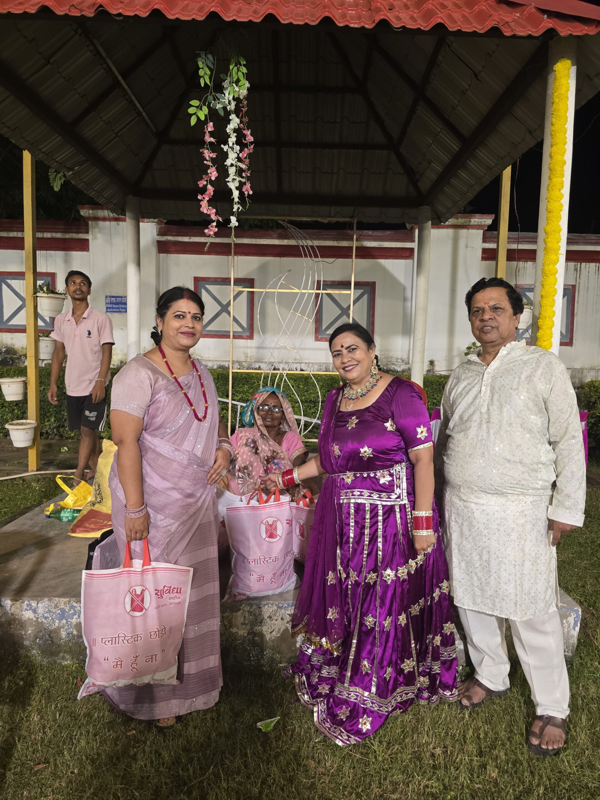 नवरात्रि में डांडिया उत्सव पर सृजन शाखा द्वारा आयोजित ऋषभ वैदिक योगा सेंटर पर शशि श्रीवास्तव के अध्यक्षता में व संरक्षक ज्ञानेन्द्र बहादुर के देखरेख में डांडिया उत्सव धूमधाम से मनाया गया जिसमें सृजन शाखा द्वारा सेवा और सहयोग की भावना के अंतर्गत एक जरूरतमंद कुम्हारिन को जिसके बेटों ने घर से निकाल दिया है, दिया का स्टॉल लगवा कर आत्मनिर्भर होने का अवसर प्रदान किया गया ताकि वह अपनी मेहनत से जीविका चला सके। साथ ही पर्यावरण को देखते हुए प्लास्टिक छोड़ो मैं हूं ना स्लोगन के साथ सभी को कपड़े के झोले वितरित किए गए । नौदैवी स्वरूपा महिला सदस्यों जो गृहिणी के साथ बाहरी कामकाज भी करती हैं आकांक्षा सिन्हा रंजना चौबे संध्या गुप्ता मोना खन्ना कुमकुम श्रीवास्तव को शक्ति नारी सम्मान भी दिया गया यह पहल न केवल महिला सशक्तिकरण दर्शाती है बल्कि समाज में आत्मनिर्भरता और सहयोग की भावना को भी प्रोत्साहित करती है । कार्यक्रम में अतिथि के रूप में अपर्णा सिंह प्रांतीय अध्यक्ष श्री अजीत मल्होत्रा महासचिव श्री प्रमोद कुमार दुबे प्रांतीय सचिव विष्णु सेठ उपस्थित रहे।