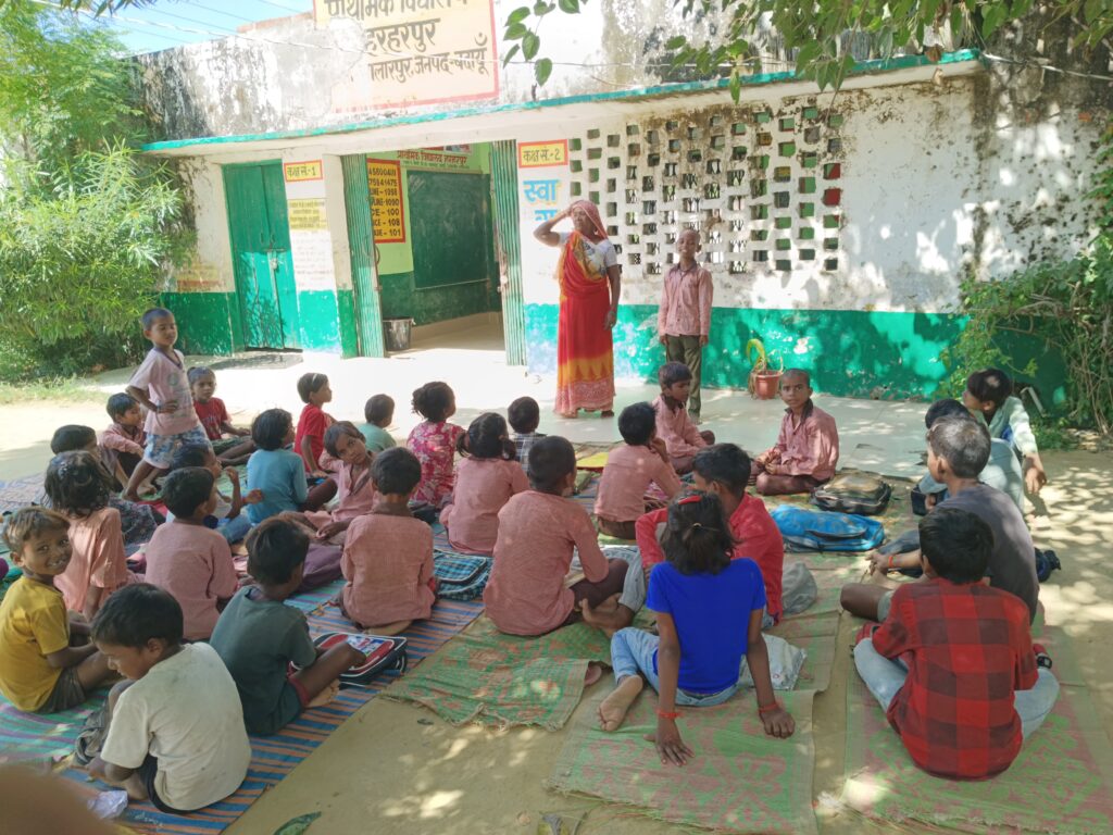 लापरवाह शिक्षक हरहरपुर में बच्चे और रसोइया ने पढ़ाई संभाली।