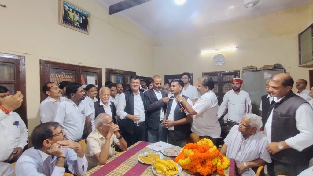 शिरीष कुमार मेहरोत्रा का बदायूं कचहरी परिसर में तूफानी दौरा।वकीलों ने किया पुष्प माला पहना कर जोरदार स्वागत।