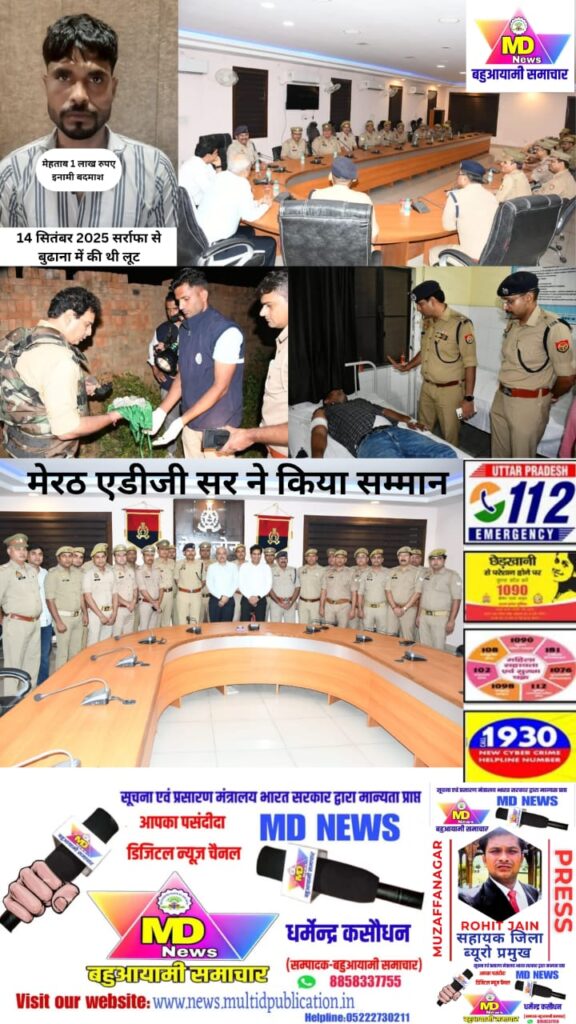 मेरठ एडीजी सर ने इस सराहनीय कार्य के लिए पुलिस टीम मुजफ्फरनगर वरिष्ठ अधिकारी एसएसपी एसपी देहात CO बुढ़ाना वह थाना बुढ़ाना थाना शाहपुर के पुलिस बल के सराहनीय कार्य के लिए सम्मानित किया