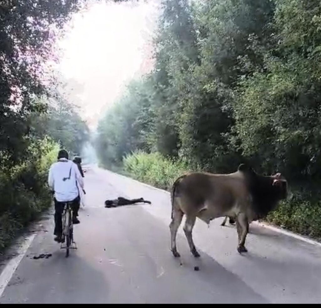 प्रयागराज उतरांव थाना क्षेत्र के नागनाथपुर पुलिया के समीप जा रहे बाइक सवार युवक की सांड से लड़ने से हुई मौत।*