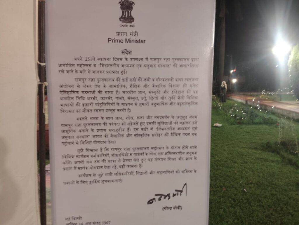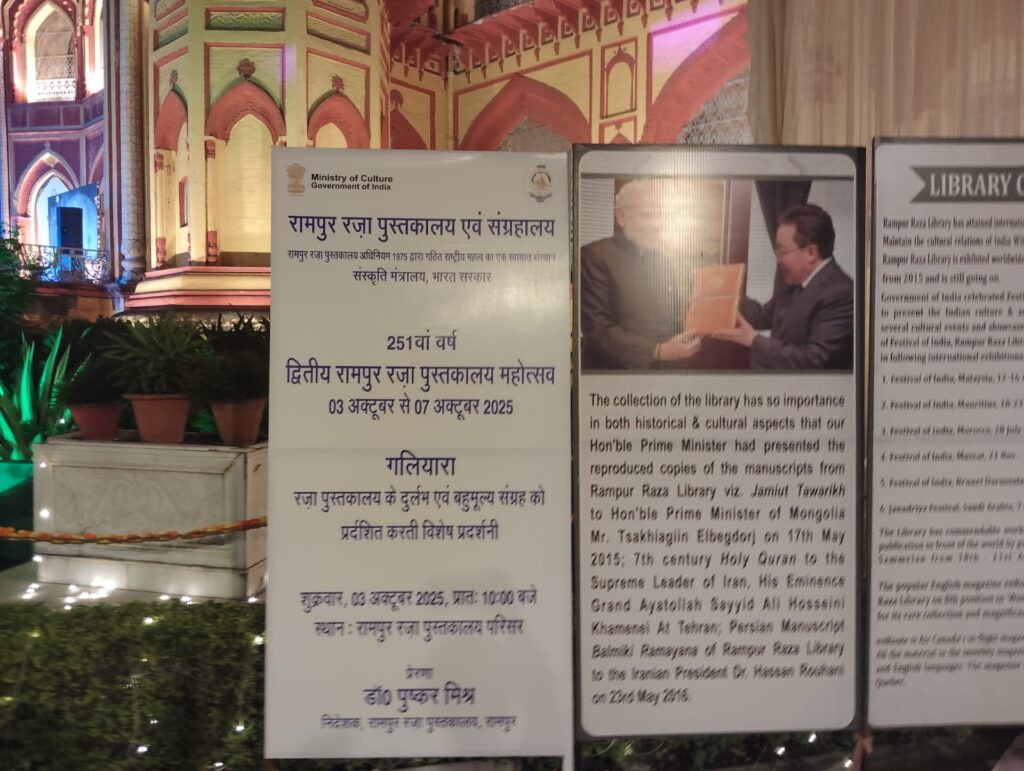 ब्रेकिंग न्यूज़ संवाददाता एम डी न्यूज़ जनपद रामपुर —–रामपुर रजा पुस्तकालय महोत्सव रामपुर रज़ा पुस्तकालय एवं संग्रहालय, रामपुर के 251वें स्थापना वर्ष के उपलक्ष्य में दिनांक 03.10.2025 से 07.10.2025 तक आयोजित होने वाले द्वितीय रामपुर रजा पुस्तकालय महोत्सव का शुभारंभ माननीय राज्यपाल उत्तर प्रदेश एवं अध्यक्ष, रामपुर रजा पुस्तकालय बोर्ड श्रीमती आनंदीबेन पटेल द्वारा वर्चुअल माध्यम से किया गया। थाइस अवसर पर आयोजित राष्ट्रीय संवाद “संगम वसुधैव गांधी : तुलसी युग में स्वराज उद्घोष” में देश के प्रख्यात इतिहासकारों ने प्रतिभाग कर अपने विचार व्यक्त किए इस अवसर पर मीडिया से बात करते हुए डॉक्टर पुष्कर मिश्रा निर्देशक रामपुर राजा लाइब्रेरी पुस्तक कर ले
