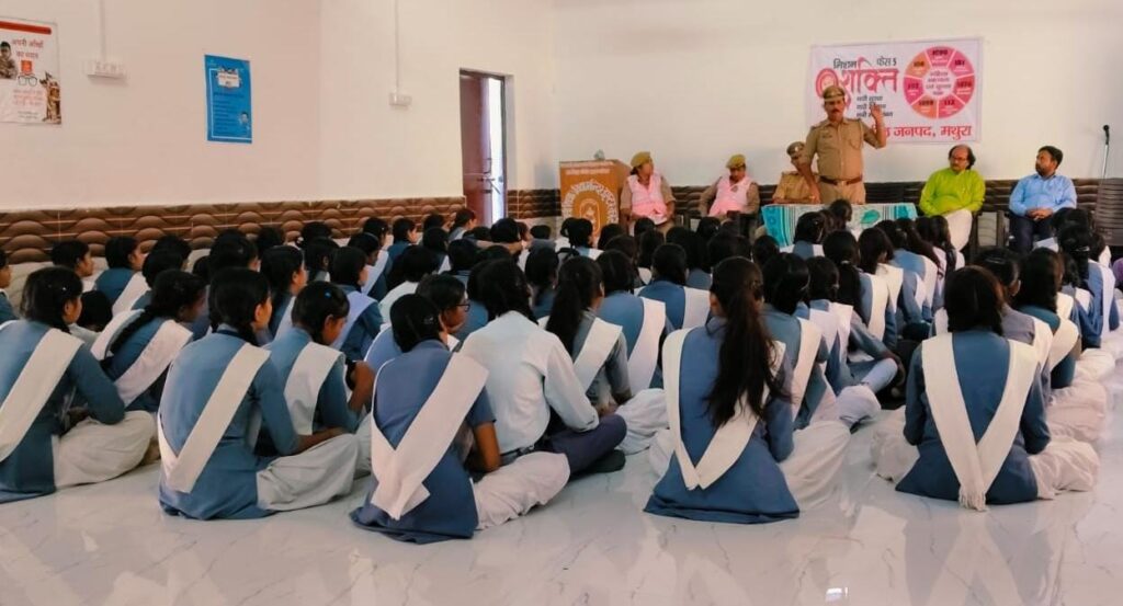 जनपद मथुरा की तहसील मांट की ब्लॉक नौहझील में सरस्वती विद्या मंदिर कॉलेज में पुलिस कर्मियों ने छात्राओं को मिशन शक्ति 5.0 के अंतर्गत जागरूक किया जिसमें FIR की आवेदन प्रक्रिया के बारे में बताया गया । इसी कार्यक्रम में कोलहार चौकी इंचार्ज संजय कुमार उपनिरीक्षक,उनकी टीम और कॉलेज स्टाफ उपस्थित रहे।