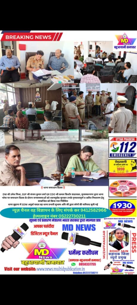आज जनपद मुज़फ्फरनगर के सभी थाना क्षेत्र में सुनी गई लोगों की फरियाद