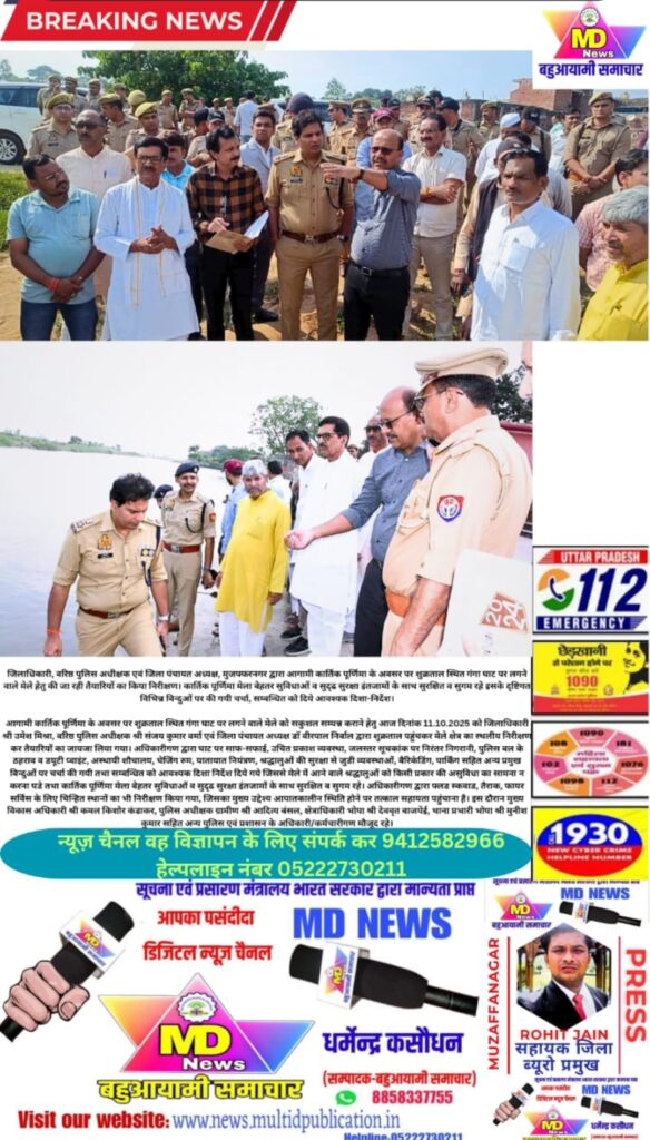 आगामी कार्तिक पूर्णिमा के अवसर पर शुक्रताल स्थित गंगा घाट पर लगने वाले मेले को सकुशल सम्पन्न कराने हेतु आज दिनांक 11.10.2025 को जिलाधिकारी श्री उमेश मिश्रा, वरिष्ठ पुलिस अधीक्षक श्री संजय कुमार वर्मा एवं जिला पंचायत अध्यक्ष डॉ वीरपाल निर्वाल द्वारा शुक्रताल पहुंचकर मेले क्षेत्र का स्थलीय निरीक्षण कर तैयारियों का जायजा लिया गया। अधिकारीगण द्वारा घाट पर साफ-सफाई, उचित प्रकाश व्यवस्था, जलस्तर सूचकांक पर निरंतर निगरानी, पुलिस बल के ठहराव व डयूटी प्वाइंट, अस्थायी शौचालय, चेजिंग रुम, यातायात नियंत्रण, श्रद्धालुओं की सुरक्षा से जुडी व्यवस्थाओं, बैरिकेडिंग, पार्किंग सहित अन्य प्रमुख बिन्दुओं पर चर्चा की गयी तथा सम्बन्धित को आवश्यक दिशा निर्देश दिये गये