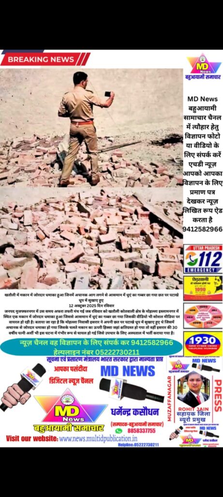 जनपद मुजफ्फरनगर में उस समय अफरा तफरी मंच गई जब रविवार को खतौली कोतवाली क्षेत्र के मोहल्ला इस्लामनगर में स्थित एक मकान में जोरदार धमाका हुआ जिससे आसमान में धुएं का गब्बर छा गया जिसकी वीडियो भी सोशल मीडिया पर वायरल हो रही है। बताया जा रहा है कि मोहल्ला निवासी इसरार ने अपनी छत पर पटाखे धूप में सुखाए हुए थे जिसमें अचानक से जोरदार धमाका हो गया जिसके चलते मकान का ऊपरी हिस्सा जहां क्षतिग्रस्त हो गया तो वहीं इसरार की 30 वर्षीय पत्नी अर्शी भी इस घटना में गंभीर रूप से घायल हो गई जिसे उपचार के लिए अस्पताल में भर्ती कराया गया है।