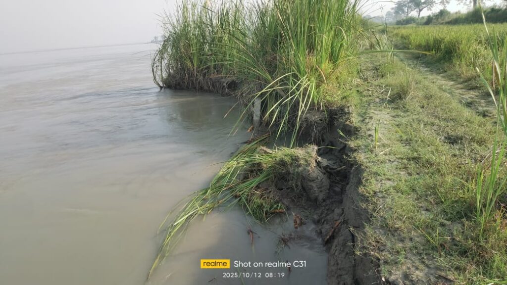 बिजुआ खीरी। लखीमपुर जिले के दौलतापुर ग्राम पंचायत में शारदा नदी का कटान तीन दिन बाद भी जारी है। इससे रेलवे लाइन को खतरा पैदा हो गया है और ग्रामीणों में चिंता बढ़ गई है।