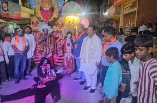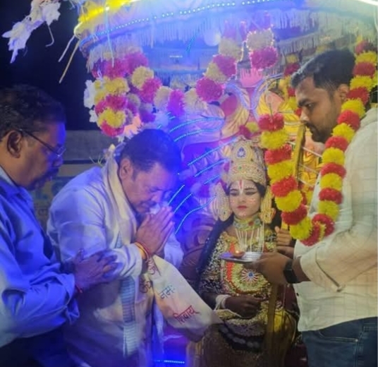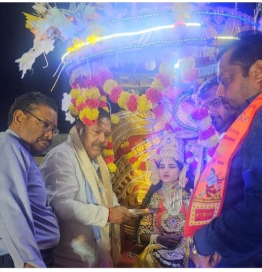 क्षेत्रीय विधायक राजीव कुमार सिंह उर्फ बब्बू भइया ने किया भगवान राम का तिलक बारात को दिखाई हरी झंडी।
