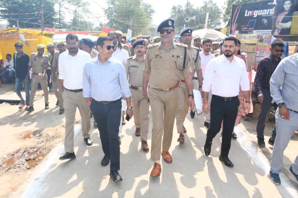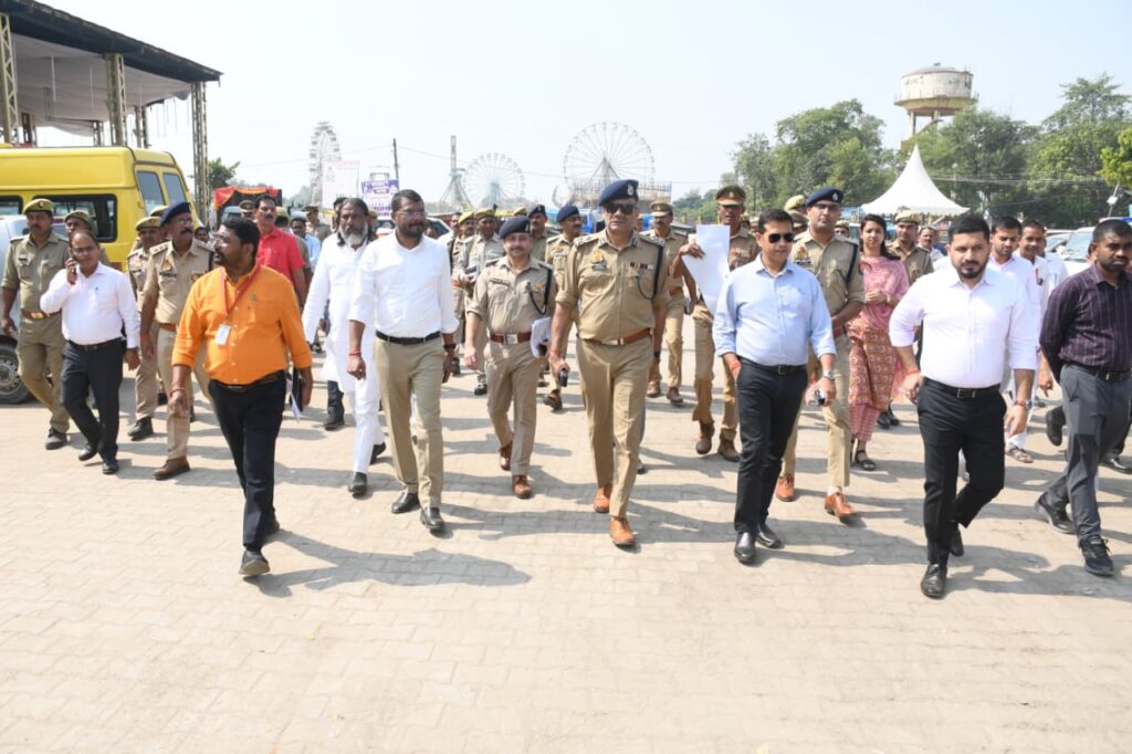* बाराबंकी।आयुक्त अयोध्या मंडल अयोध्या राजेश कुमार एवं पुलिस महानिरीक्षक, अयोध्या परिक्षेत्र, अयोध्या प्रवीण कुमार द्वारा जिलाधिकारी बाराबंकी शशांक त्रिपाठी व पुलिस अधीक्षक बाराबंकी अर्पित विजयवर्गीय के साथ देवा मेला क्षेत्र का संयुक्त निरीक्षण किया गया। निरीक्षण के दौरान दोनों वरिष्ठ अधिकारियों ने मेला क्षेत्र में की गई व्यवस्थाओं का गहन अवलोकन किया तथा *सुरक्षा प्रबंध, यातायात व्यवस्था, स्वच्छता, पेयजल, प्रकाश व्यवस्था, चिकित्सा सुविधाओं, नियंत्रण कक्ष एवं अग्निशमन व्यवस्था* आदि की स्थिति का जायज़ा लिया। अधिकारियों ने मेला परिसर में तैनात पुलिस बल एवं प्रशासनिक कर्मियों को मेला क्षेत्र में आने वाले श्रद्धालुओं को किसी प्रकार की असुविधा न होने तथा संपूर्ण व्यवस्थाएँ सुचारू रूप से संचालित रहने आदि के सम्बन्ध में आवश्यक दिशा-निर्देश निर्देश दिए गये। निरीक्षण उपरांत आयुक्त एवं पुलिस महानिरीक्षक द्वारा पुलिस एवं प्रशासनिक अधिकारियों के साथ गोष्ठी आयोजित की गई, जिसमें भीड़ को दृष्टिगत रखते हुए सुरक्षा व्यवस्था को और प्रभावी बनाने, पार्किंग एवं ट्रैफिक प्रबंधन को सुव्यवस्थित रखने, मेला नियंत्रण कक्ष को सक्रिय रखने तथा समन्वयात्मक कार्यशैली अपनाने आदि आवश्यक दिशा निर्देश दिये गये।