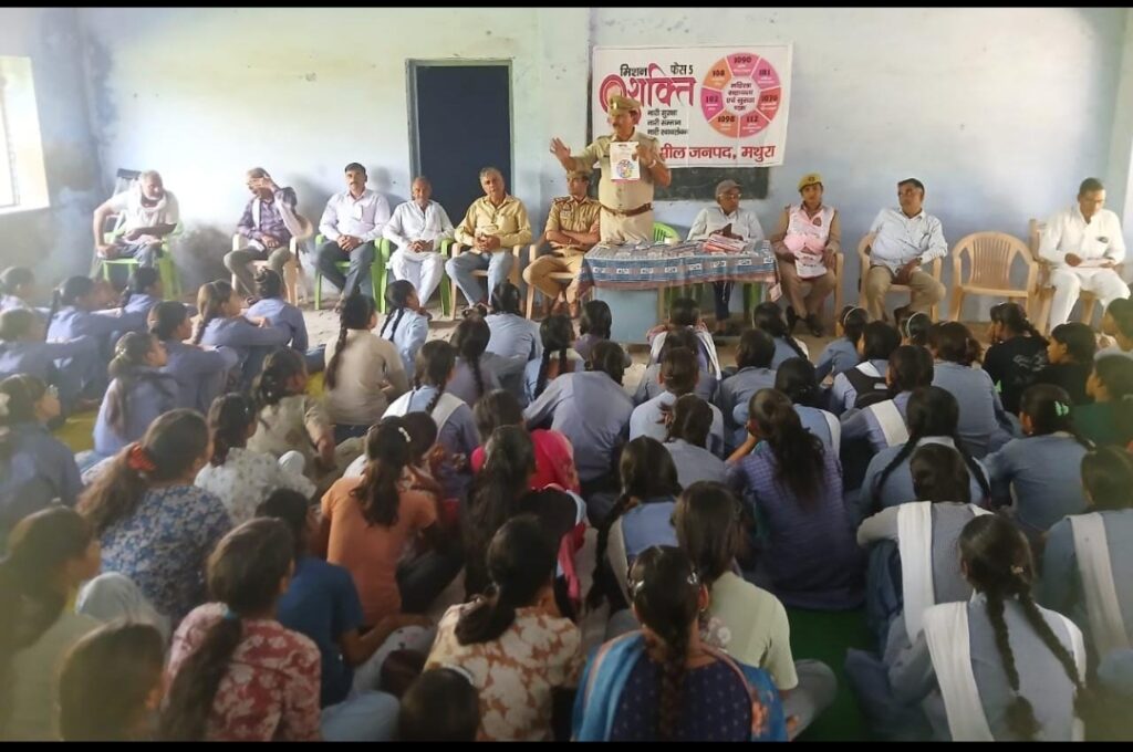 बॉडी: जनपद मथुरा के कस्बा बाजना के पास बारोट गांव में श्री महेन्द्र सिंह उच्चतर विद्यालय और श्री रामस्वरूप उच्चतर विद्यालय में मिशन शक्ति 5.0 के अंतर्गत थाना नौहझील की टीम द्वारा महिला हेल्पलाइन नंबर, साइबर अपराध , बालिकाओं के साथ होने वाले अपराध और बालिकाओं के विकास के लिए जागरूक किया गया। इस अवसर पर प्रधानाचार्य होशियार सिंह और महेश चंद्र शर्मा द्वारा चलाए जाए रहे अभियान की सराहना करते हुए बच्चों को योजना के बारे बताते हुए आशीष दिए।