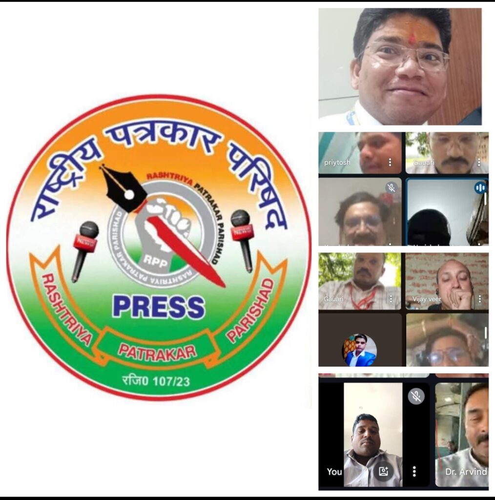राष्ट्रीय पत्रकार परिषद अर्थात नेशनल प्रेस काउंसिल की मीटिंग बीते रविवार को गूगल मीट के माध्यम से सकुशल सम्पन्न हुई। मीटिंग में पदाधिकारियों द्वारा पीड़ित असहाय गरीब शोषित सरकार द्वारा विभिन्न योजनाओं से वंचित व्यक्तियों को लाभ पहुंचाने से लेकर मदद करने एवम निस्वार्थ भाव से मदद करते रहते इत्यादि विभिन्न मुद्दों पर राष्ट्रीय पत्रकार परिषद के राष्ट्रीय अध्यक्ष श्रीमान उपेन्द्र उपाध्याय जी ने कही एवम वर्तमान में एवम भविष्य में पत्रकारों को लाभ हित योजनाओं के मुद्दों पर भी चर्चा हुई जैसे पत्रकारों का हनन पत्रकारों को विभिन्न योजनाओं का लाभ न मिलना पत्रकारों के साथ मारपीट परिषद का विस्तार इत्यादि मुद्दें शामिल थे।मीटिंग में शामिल राष्ट्रीय,प्रदेश, मण्डल,जिला,तहसील, ब्लॉक के सभी पदाधिकारी मौजूद रहे।