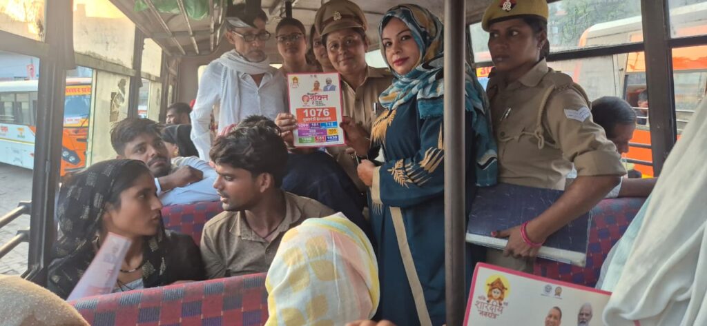 बाराबंकी:- पुलिस अधीक्षक अर्पित विजयवर्गीय के निर्देशानुसार अपर पुलिस अधीक्षक उत्तरी विकास चंद्र त्रिपाठी के कुशल पर्यवेक्षण में क्षेत्राधिकारी नगर संगम कुमार मुख्यमंत्री द्वारा चलाए जा रहे मिशन शक्ति फेज 0.5 महिला सशक्तिकरण अभियान के अंतर्गत बस स्टॉप बाराबंकी बस से देवा मेला जाने वाली महिलाओं एवं बच्चियों को नारी सुरक्षा जागरूकता अभियान चलाकर महिला थानाध्यक्ष मुन्नी सिंह व मिशन शक्ति टीम म०हे0कां०आशा यादव म०कां०आरती म०कां० सोनी म०का० प्राची पटेल म०कां० सुरभि के द्वारा महिलाओं एवं बच्चियों को नारी सुरक्षा सम्मान व स्वालंबन हेतु बाल विवाह, पास्को एक्ट व साइबर क्राइम संबंधी अपराध ,यातायात के नियमों ,ड्रोन के संबंध में फैल रहे अफवाहों से बचने के बारे में जागरूक किया गया।