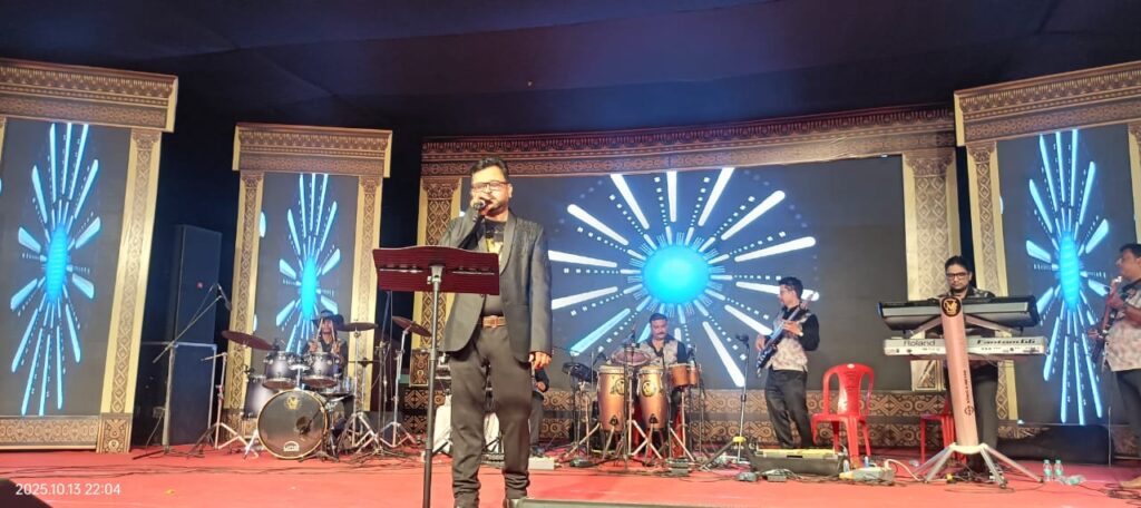 बाराबंकी। देवा मेला में सोमवार की शाम म्यूजिक कांफ्रेंस में दा वायलेंट इंटर नेशनल म्यूजिकल ग्रुप के कलाकारों ने शानदार प्रस्तुतियों से दर्शकों का मन मोह लिया। दर्शकों ने संगीत की मधुर धुनों और कॉमेडी के हंसी ठहाकों का भरपूर आनंद लिया। म्यूजिक कांफ्रेंस की शुरुआत जॉइंट मजिस्ट्रेट तेजस के, तहसीलदार भूपेंद्र विक्रम सिंह द्वारा दीप प्रज्ज्वलित कर की गई। पहली प्रस्तुति सिंगर कुलदीप सिंह ने वंदना गीत, तेरी पनाह में हमें रखना, गीत से की। सिंगर दिव्यांशी मौर्या ने अपनी लोकप्रिय प्रस्तुतियों में अपनी पनाह में, हवा हवाई, परदे में रहने दो और नाकाबंदी प्रस्तुत कर दर्शकों को मंत्रमुग्ध किया। सिंगर कुलदीप सिंह ने लाई वी न गयी कभी, खाली दिल, हर किसी को नहीं मिलता और हम्मा हम्मा से कार्यक्रम को और रोमांचक बनाया। सिंगर जमाल खान ने जिंदगी एक सफर है सुहाना, हाल क्या है दिलों का न पूछो सनम, ओम शांति ॐ और इक रास्ता है जिंदगी का, प्रस्तुत कर श्रोताओं को भावविभोर कर दिया। सिंगर जुबेर हाशमी ने तेरी दीवानी, हल्का हल्का शुरुर है, चन्ना मेरे यार और इश्क सूफ़ियाना से संगीत प्रेमियों का दिल जीत लिया।
