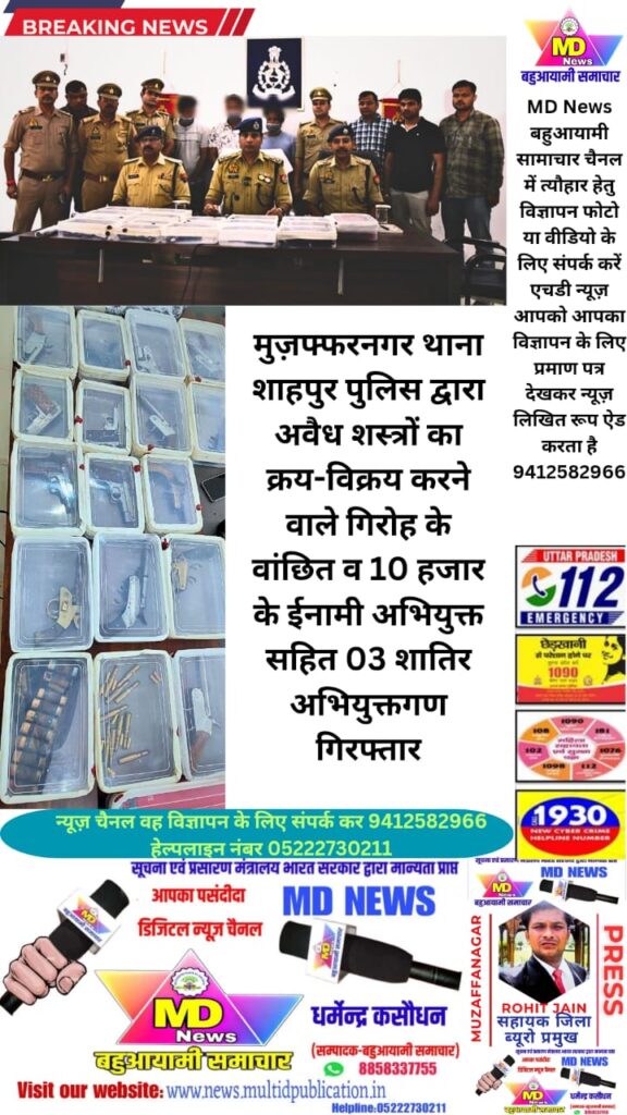 नोट- थाना शाहपुर पुलिस द्वारा गिरफ्तार अभियुक्त तसव्वर उपरोक्त शातिर किस्म का अपराधी हैं तथा थाना भोपा पर पंजीकृत मु0अ0सं0 253/2025 धारा 109(1)/61(2)/318(4)/317(5) बीएनएस व 3/5/25/27 आयुद्ध अधिनियम में वांछित चल रहा था जिसकी गिरफ्तारी हेतु वरिष्ठ पुलिस अधीक्षक मुजफ्फरनगर द्वारा 10 हजार रूपये का पुरस्कार घोषित किया गया था। पुलिस द्वारा इस गिरोह के अन्य FORWARD व BACKWORD LINKAGES की जांच भी की जा रही है तथा इस गिरोह में शामिल अन्य अभियुक्तगण की गिरफ्तारी भी सुनिश्चित की जायेगी।