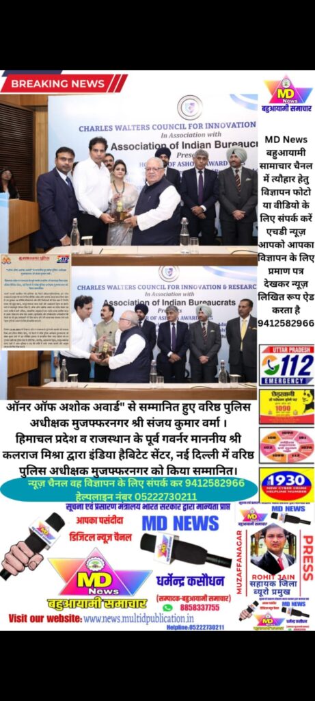 जनपद मुजफ्फरनगर के वरिष्ठ पुलिस अधीक्षक संजय कुमार वर्मा जी को हिमाचल प्रदेश व राजस्थान के पूर्व गवर्नर माननीय श्री कलराज मिश्रा द्वारा इंडिया हैबिटेट सेंटर, नई दिल्ली में ऑनर ऑफ अशोक अवार्ड से किया सम्मानित।