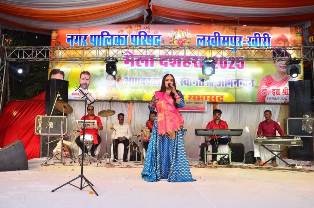 , दर्शक मंत्रमुग्धबहु आयामी समाचार एमडी न्यूज़ वॉइस ब्यूरो चीफ लखनऊ मंडल मोहम्मद आमिर 15 अक्टूबर लखीमपुर: दशकों पुरानी परंपरा और पूर्वांचल की जीवंत संस्कृति का संगम स्थल, प्राचीन दशहरा मेला लखीमपुर, अपनी ग्यारहवीं सांस्कृतिक शाम पर और भी रंगीन हो उठा। पांडाल में बजी मधुर धुनों की गूँज ने हर दर्शक के दिल को छू लिया।मुख्य अतिथि सीडीओ खीरी अभिषेक कुमार, पालिकाध्यक्षा डॉ. इरा श्रीवास्तव, ईओ संजय कुमार और अन्य विशिष्ट अतिथियों ने दीप प्रज्ज्वलित कर इस सांस्कृतिक महाकुंभ का उद्घाटन किया। मंच पर संजोली पाण्डेय ने अपनी सुरमई प्रस्तुतियों से लोगों के मन-मस्तिष्क में संगीत और थिरकन का अमर अनुभव उकेरा। उनकी मधुर आवाज़ ने लोक संगीत के रंगों को जीवंत किया और हर श्रोता को आनंद और भावनाओं की लहर में बहा ले गया।उद्घाटन सत्र का संचालन समाजसेवी और साहित्यकार राम मोहन गुप्त ने किया। इस अवसर पर पालिका परिषद ने समाज और संस्कृति के क्षेत्र में उत्कृष्ट योगदान देने वाले लोगों का सम्मान भी किया। मंच पर एक-एक कर सम्मानित व्यक्तियों ने समारोह को और भी गरिमामयी बना दिया।सम्मानित व्यक्तियों में: एमआर सुजीत गुप्ता, सचिन प्रभाकर, अवधेश प्रताप सिंह, रामज्ञान, आदर्श मिश्रा, प्रमोद सिंह, प्रदीप सक्सेना, संतोष मिश्रा, पुत्तन मिश्रा, रवि श्रीवास्तव, सुनील शुक्ला, कीर्ति शुक्ला, आशीष चौबे, अंशू गौड़, मनोज राय, अरुण पाण्डेय, राजेश सिंह, और अन्य गणमान्य लोग शामिल रहे।विशिष्ट अतिथियों के रूप में वरिष्ठ अधिवक्ता प्रीतम सिंह बग्गा, भाजपा नेता उमा शंकर मिश्रा दद्दू, समाजसेवी इंद्रेश गुप्ता, यदुलेश मुरारी सक्सेना, और डॉ. पी के गुप्ता उपस्थित थे। सम्मेलन का संयोजन विजय गुप्ता, अजय गुप्ता, बृजेश पाल, अनिरुद्ध त्रिपाठी और राकेश कुमार ने कुशलतापूर्वक किया।मुख्य अतिथि ने आयोजन समिति की व्यवस्था, स्वच्छता और सुचारू संचालन की सराहना की। यह मेले का आयोजन केवल सांस्कृतिक प्रदर्शनी नहीं था, बल्कि समाज सेवा, संगीत और परंपरा के माध्यम से समुदाय की आत्मा और पहचान को उजागर करने का जीवंत उदाहरण बन गया।लखीमपुर के इस दशहरा मेले ने दर्शकों को सुर, थिरकन और भावनाओं की अद्भुत यात्रा पर ले जाकर प्रेरणा और आनंद का अमूल्य अनुभव दिया।