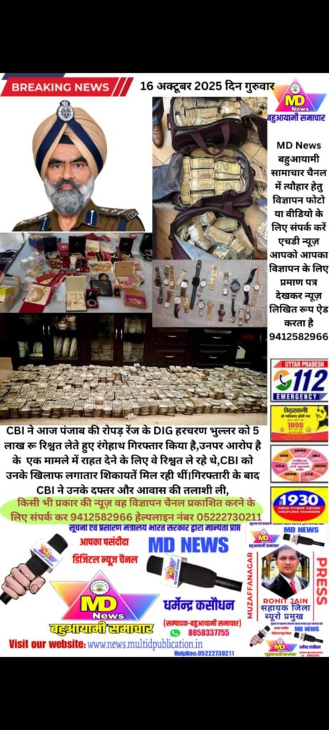 पंजाब पुलिस के DIG हरचरन सिंह भुल्लर अरेस्ट, मोहाली में CBI ने ट्रैप लगाकर दबोचा, स्क्रैप कारोबारी ने रिश्वत लेने की शिकायत दी थी।