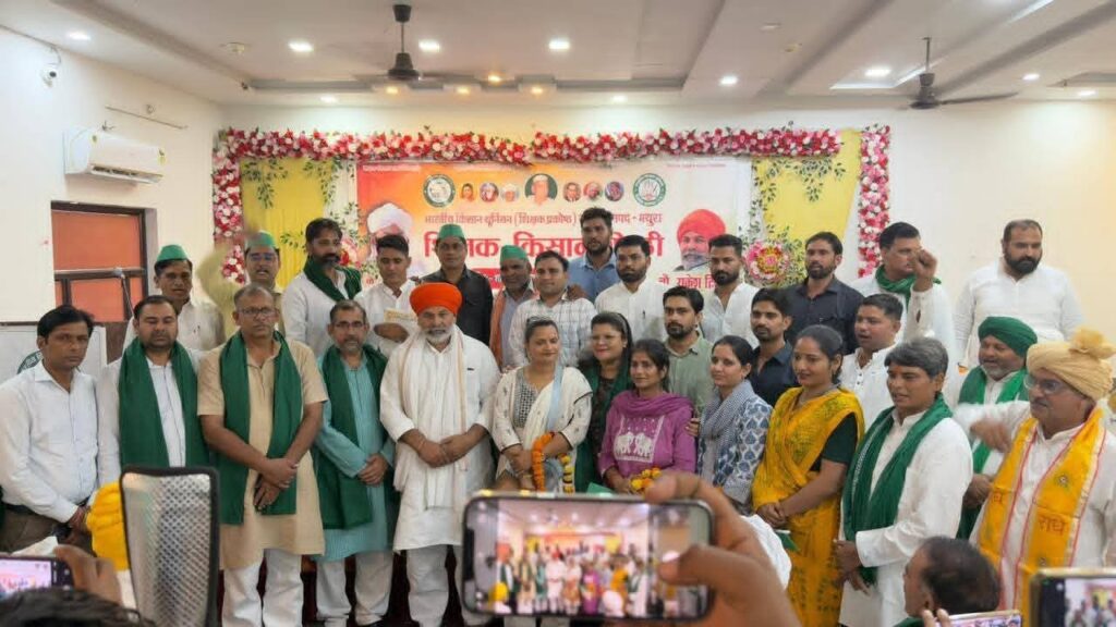 बलदेव।भारतीय किसान यूनियन (शिक्षक प्रकोष्ठ) जिला कार्यकारिणी मथुरा का गठन स्थानीय एक होटल में किया गया।इस अवसर पर संगोष्ठी का भी आयोजन किया गया।इस आयोजन में मुख्य अतिथि के रूप में भारतीय किसान यूनियन के राष्ट्रीय प्रवक्ता राकेश टिकैत ने भाग लिया। उन्होंने अपने संबोधन में कहा कि शिक्षकों के लिए टीईटी (TET) परीक्षा की अनिवार्यता का विरोध किया जाएगा और सरकार से इस कानून को वापस लेने की मांग की। उन्होंने चेतावनी दी कि यदि सरकार उनकी मांग नहीं मानती है तो आंदोलन किया जाएगा।इसके साथ ही पुरानी पेंशन बहाल करने, शिक्षामित्रों, अनुदेशकों, विशिष्ट शिक्षिकों को नियमित शिक्षकों की तुलना में बहुत कम वेतन मिलने, समान कार्य समान वेतन के आधार पर बढ़ाए जाने, परिषदीय शिक्षक के रूप में तैनात पति पत्नी को गृह जनपद में स्थानांतरित किए जाने, शिक्षकों पर गैरशैक्षिणक कार्यों का बोझ न डालने के मुद्दे पर भाकियू आंदोलन करेगी।उन्होंने कहा कि सभी शिक्षकों का सहयोग, एकता और समर्पण ही संगठन की सच्ची शक्ति है।किसान यूनियन शिक्षक प्रकोष्ठ सभी शिक्षकों के साथ मिलकर शिक्षक वर्ग की समस्याओं एवं समाज के हित में निरंतर कार्य करते रहेंगे।कार्यकारणी में रवेंद्र रावत जिला संरक्षक, ओमप्रकाश जिला अध्यक्ष,वेदवीर सिंह जिला कार्यकारी अध्यक्ष,जितेंद्र जिला महामंत्री,अभिषेक जिला कोषाध्यक्ष,प्रीति जिला महिला उपाध्यक्ष,मनेंद्र जिला उपाध्यक्ष,मंगलजीत सिंह , राजकुमार व कर्मवीर चाहर जिला संगठन मंत्री,जगवीर सिंह जिला मीडिया प्रभारी,कर्मवीर सिंह व गब्बर सिंह जिला उपाध्यक्ष बनाए गए।कार्यक्रम का संचालन गौरीशंकर ने किया।कार्यक्रम के समापन के उपरांत रवेंद्र रावत द्वारा सभी उपस्थित सम्मानित गणमान्यों का आभार व्यक्त किया गया।इस मौके पर सुशेंद्र मित्तल,सुजीत वर्मा,श्यामबाबू अग्रवाल,अमित कुमार,गब्बर सिंह, यशपाल सिंह, नरेंद्र सिह,सोहन सिंह,हरिश्चंद्र,महावीर सिंह,डॉ देव,अतेंद्र सिंह,रामवीर सिंह,गजेन्द वर्मा,श्यामबाबू अग्रवाल,अमित कुमार,गब्बर सिंह, यशपाल सिंह, नरेंद्र सिह,सोहन सिंह,हरिश्चंद्र,महावीर सिंह,डॉ देव,अतेंद्र सिंह,रामवीर सिंह,गजेन्द्र सिंह,चंद्रभान सिंह,महेश भारती सौरभ सारस्वत,सुमित ,कर्मवीर, रणवीर सिंह,राजकुमार,मंजू,अशोक, शालू तोमर,गीता रावत, शानू,कुलदीप सिंह नरदेव सिंह, मनीषा फ़ौजदार,सुनीता कुमारी, धर्मवीर सिंह,रूबी चौधरी, सुमित कुमार,अर्चना वर्मा आदि उपस्थित रहे।