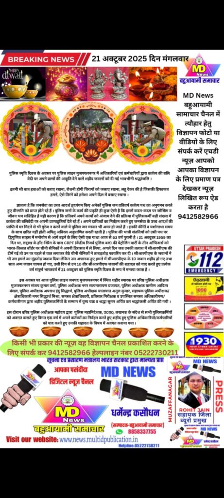जनपद मुजफ्फरनगर पुलिस स्मृति दिवस के अवसर पर पुलिस लाइन जनपद में अधिकारियों एवं कर्मचारियों द्वारा कर्तव्य की बलि वेदी पर अपने प्राणों की आहूति देने वाले शहीद जवानों को दी गई भावभीनी श्रद्धांजलि।