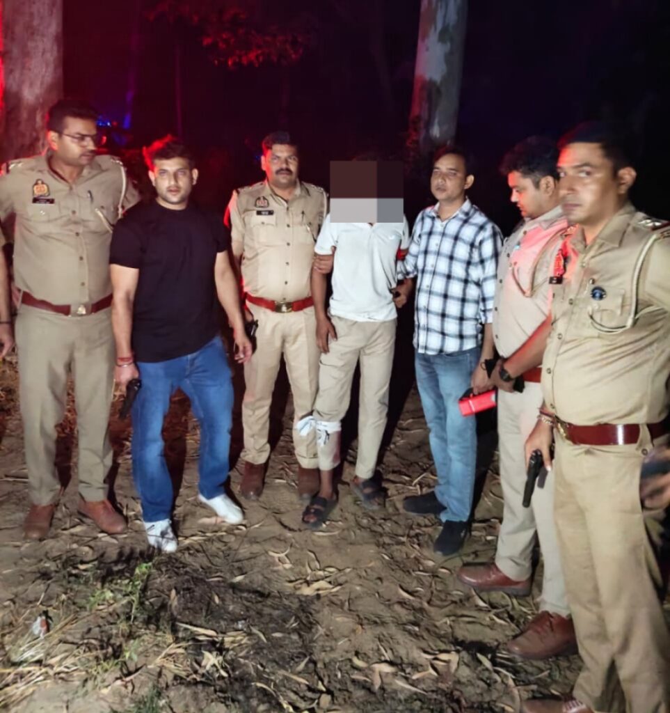 वरिष्ठ पुलिस अधीक्षक जनपद मुजफ्फनगर संजय कुमार वर्मा के तथा थाना प्रभारी छपार मोहित कुमार के कुशल नेतृत्व में दिनांक 20.10.2025 को वादी शराफत पुत्र जहूर अहमद निवासी ग्राम खुड्डा थाना छपार, मुजफ्फरनगर ने थाना छपार पुलिस को लिखित तहरीर देकर अवगत कराया कि गांव के ही मुर्करम पुत्र सिकन्दर अपने साथी के साथ मेरे पुत्र शोएव को 02 व्यक्तियों को देवबन्द से देहरादून एयरपोर्ट छोडकर आने के बहाने बुलाकर ले गया तथा उसकी गला काटकर हत्या कर दी व शव को देहरादून रोड सहारनपुर में फेंक दिया तथा शोएब की कार को शामली में ले जाकर जला दिया। वादी द्वारा दी गयी तहरीर के आधार पर थाना छपार पुलिस द्वारा तत्काल मुकदमा पंजीकृत किया गया तथा अभियुक्तों की शीघ्र गिरफ्तारी के लिए पुलिस टीम का गठन किया गया। आज दिनांक 21.10.2025 को थाना छपार पुलिस टीम को मुखबिर द्वारा सूचना प्राप्त हुई कि हत्या करने वाले दोनों वांछित अभियुक्त कहीं भागने की फिराक में कुछ देर में बरला से बसेडा मार्ग से जाने वाले है। सूचना पर थाना छपार पुलिस टीम द्वारा मुखबिर द्वारा बताये गये स्थान पर पहुंचकर संदिग्ध व्यक्ति व वाहनों की चैकिंग करने लगी। कुछ देर बाद 01 मोटर साइकिल पर 02 संदिग्ध व्यक्ति आते हुए दिखाई दिये जिन्हे पुलिस टीम द्वारा चैकिंग के लिए टार्च की रोशनी देकर रुकने का इशारा किया गया। पुलिस टीम को देखकर मोटर साइकिल सवार व्यक्ति मोटर साइकिल को वापस मोड़ कर भागने लगे परन्तु तेज गति होने के कारण मोटरसाइकिल अनियंत्रित होकर गिर गयी। खुद को पुलिस टीम द्वारा घिरता देख मोटरसाइकिल सवार व्यक्तियों द्वारा मोटरसाइकिल को मौके पर ही छोड़कर पुलिस टीम पर जान से मारने की नियत से फायर किया। तो पुलिस टीम बाल बाल बची पुलिस टीम ने भी जवाबी कार्रवाई करते हुए। फायरिंग करनी शुरू कर दी जिससे 01,बदमाश पैर में गोली लगने से घायल हो गया। घायल बदमाश को पुलिस टीम ने गिरफ्तार कर लिया। घायल बदमाश के कब्जे से 01,मोटरसाइकिल बिना नंबर प्लेट 01,तमंचा 315 बोर 01,खोखा व 01,जिंदा कारतूस बरामद किया गया घायल बदमाश को उपचार के लिए अस्पताल में भर्ती कराया गया। पुलिस द्वारा पूछताछ करने पर बदमाशों ने अपने नाम मन्ववर पुत्र मंसूर निवासी मोहल्ला गुजर वाडा कुटी रोड कस्बा व थाना देवबंद सहारनपुर व अंकित राणा पुत्र समय सिंह निवासी ग्राम फतेहपुर धारूवाला थाना देवबंद सहारनपुर बताया। थाना छपार पुलिस द्वारा बदमाशों के खिलाफ अग्रिम विधिक कार्रवाई की जा रही है।