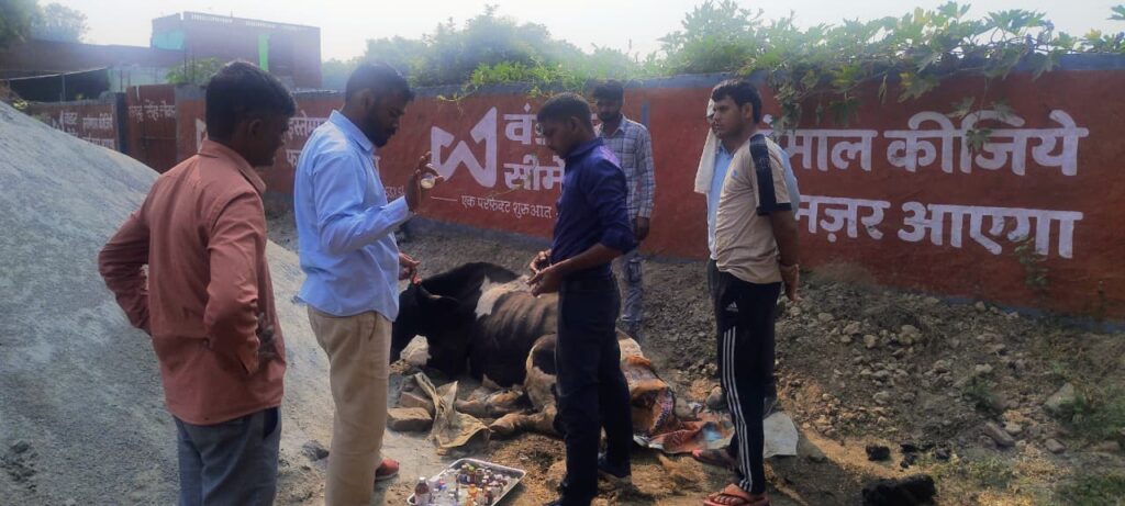 आज भदरौली से सूचना मिली कि आगरा-बाह हाईवे पर एक घायल गाय और एक गंभीर रूप से बीमार गौवंश पाया गया। तुरंत कार्रवाई करते हुए बजरंग दल के कार्यकर्ता अनीश पंडित, अरविंद तोमर, राहुल बघेल, शेर सिंह परिहार, हरेश तोमर, डॉ. दिनेश नगरिया और मेरी मौजूदगी में दोनों पशुओं का सकुशल इलाज कराया गया।