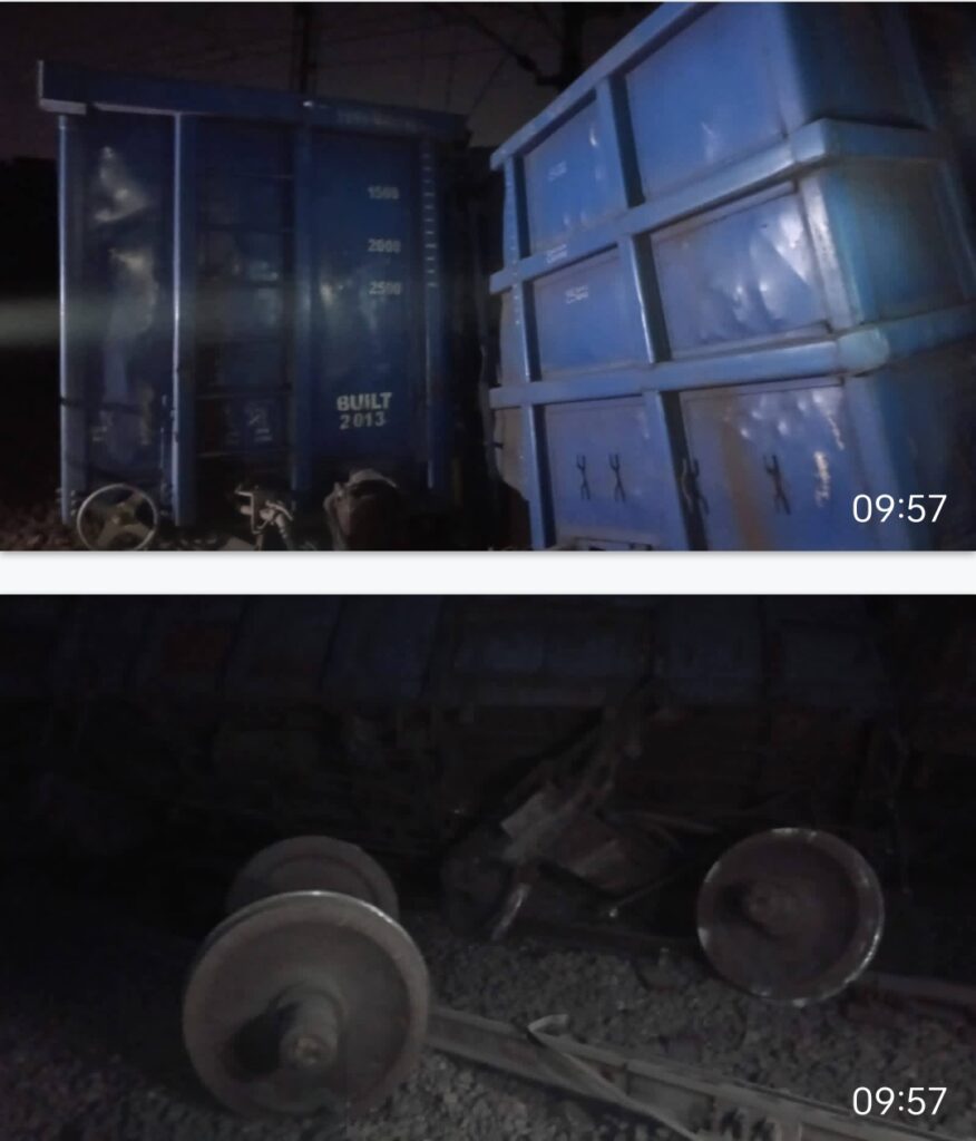 मथुरा में मंगलवार रात आगरा-दिल्ली रेल ट्रैक पर एक मालगाड़ी डिरेल हो गई.करीब 12 डिब्बे पटरी से उतर गए.वृंदावन रोड और जैंत स्टेशन के बीच मालगाड़ी के डिरेल होने से रेलवे ट्रैक बाधित हो गया.ट्रेन डिरेल होने की सूचना मिलते ही रेल प्रशासन में हड़कंप मच गया.